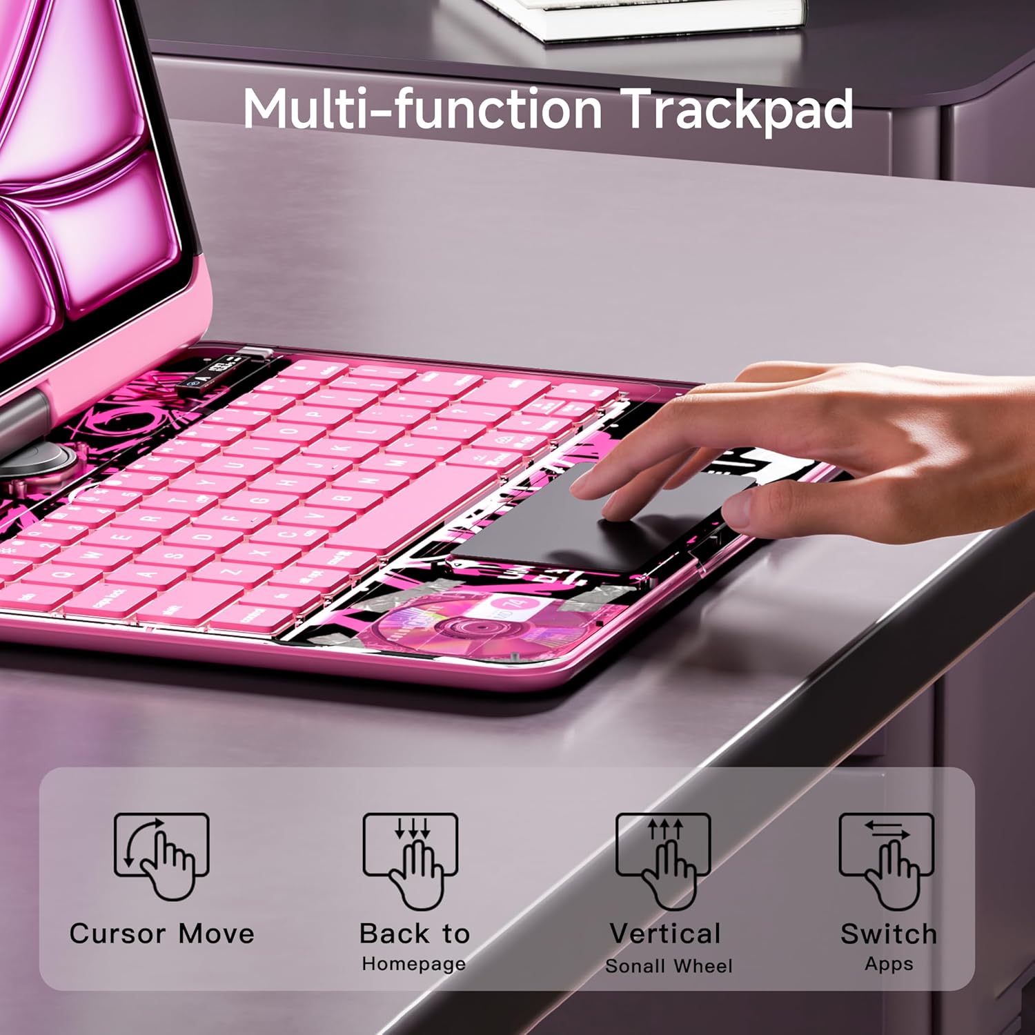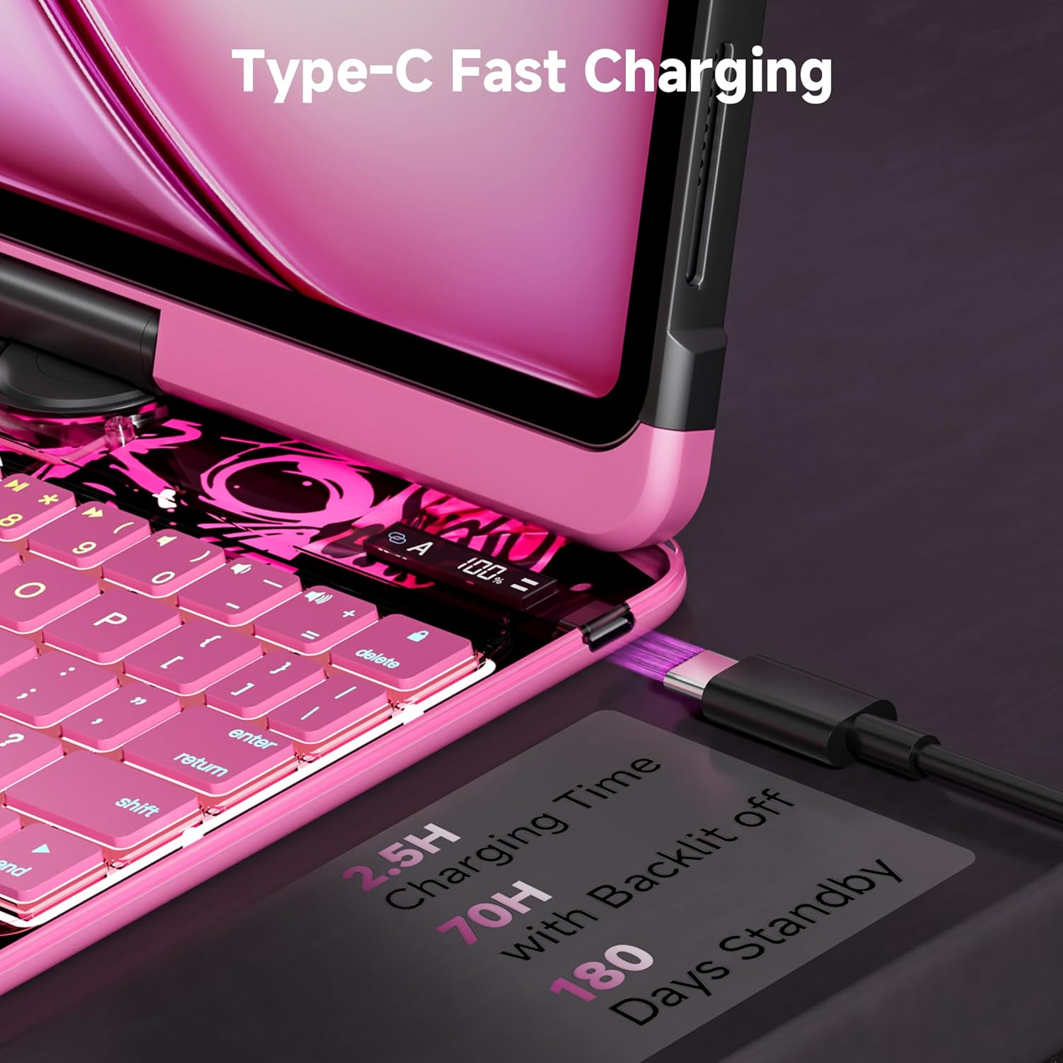 iPad Keyboard Case for 2024 M4 iPad Pro 13 inch, Magic Wireless Keyboard with Trackpad 7 Color Backlit, 360° Rotating Stand Transparent Protective Cover with Pencil Holder (Pink)