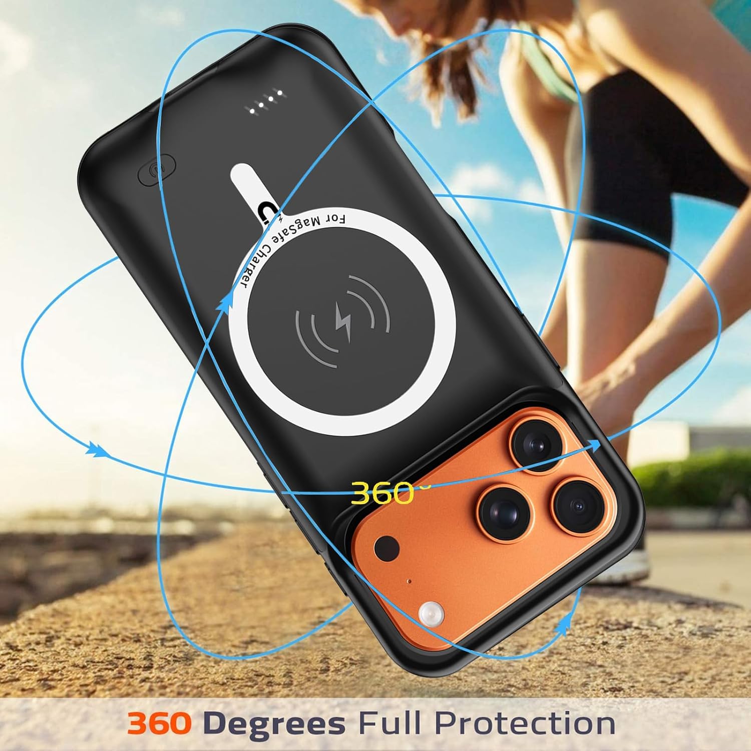Battery Case for iPhone 17 Pro, Upgraded 10000mAh Rechargeable Portable Extended Battery Pack Supported Qi Wireless Charging Case Compatible with iPhone 17 Pro (6.3 inch) Charger Power Bank (Black)