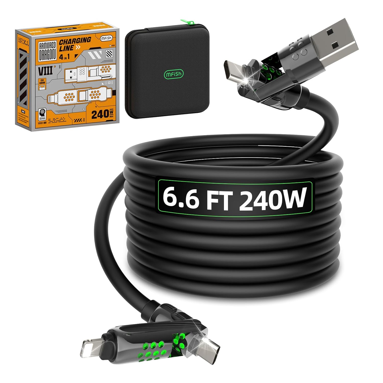MFish 4-in-1 USB C Charging Cable, 6.6Ft Type C to Type C Cable, 240W Fast Charger for iPhone 16/15/14 Pro Plus Pro Max, for iPad MacBook Pro/Air, Laptops - Multi Charging Cable with USB-A