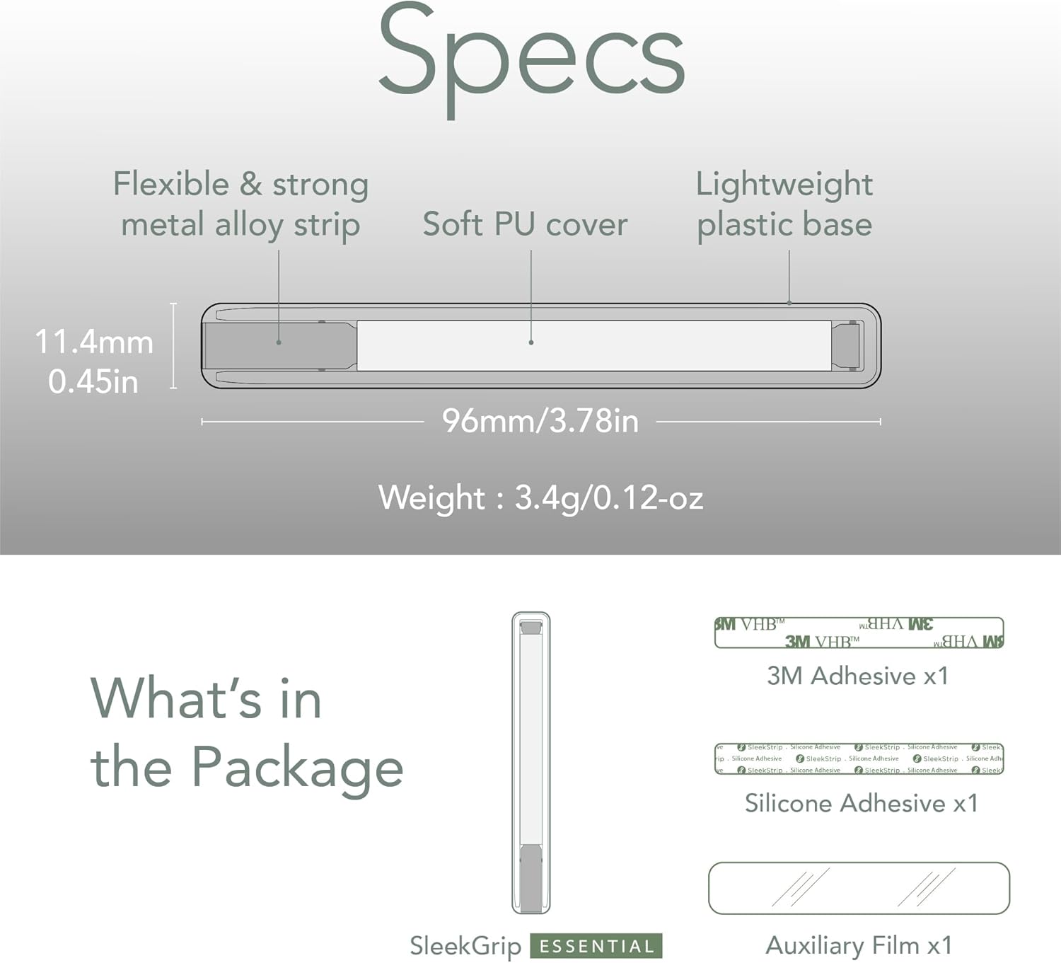 - ULTRA THIN & SLEEK: Say goodbye to bulky hand finger ring phone holder. With 0.078" / 2-mm slim and 3.4g / 0.12-oz lightweight, SleekStrip phone strap is pocket friendly and compatible with most wireless charging, clamp style car mount & selfie stick