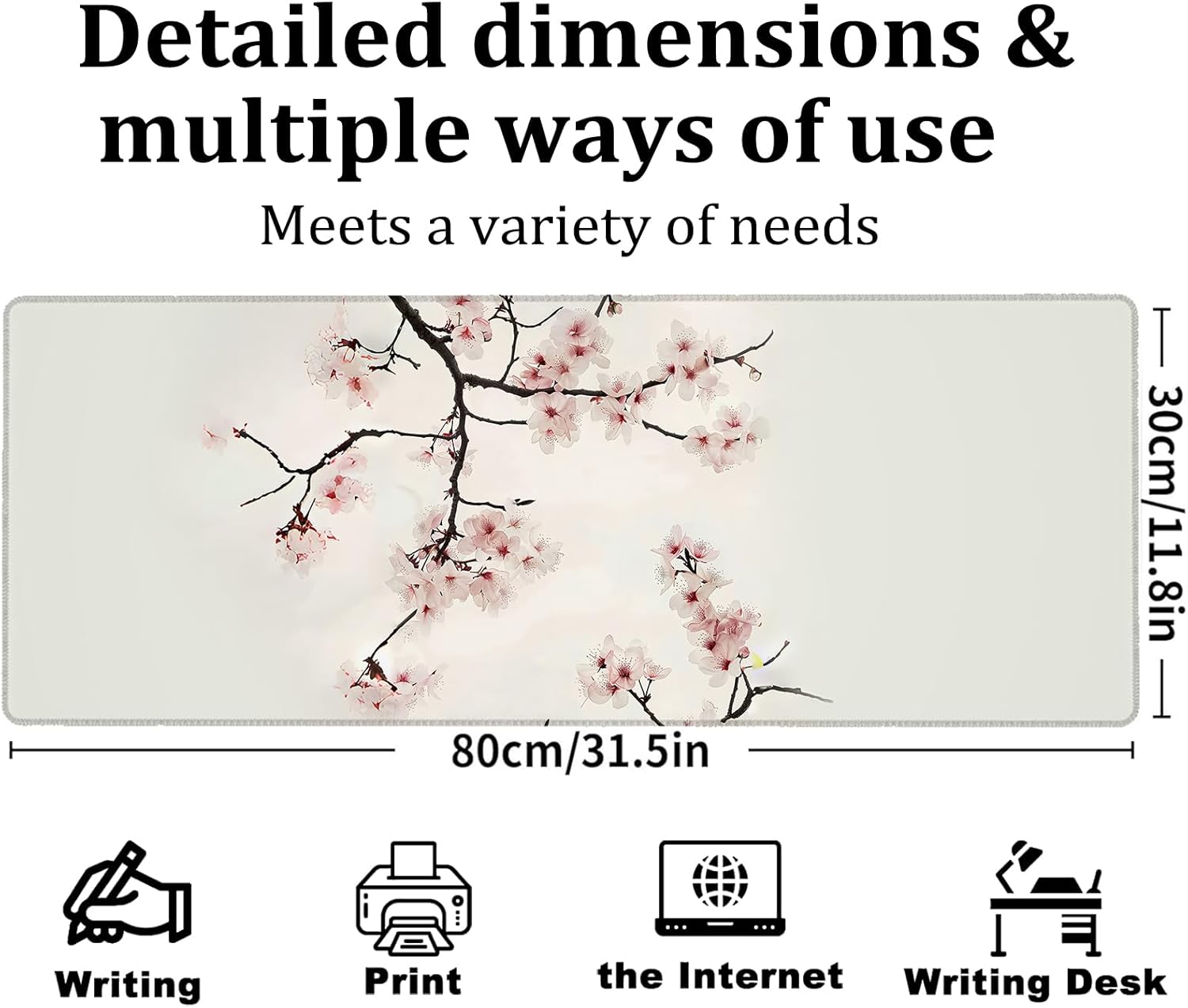 Elegant Cherry Blossom Gaming Mouse Pad, Large Office Desk Mat, Anti-Slip Rubber Base Mousepad for Computer Laptop Keyboard, Smooth Desk Pad for Home Office Gamer Work Accessories 31.5" x 11.8"