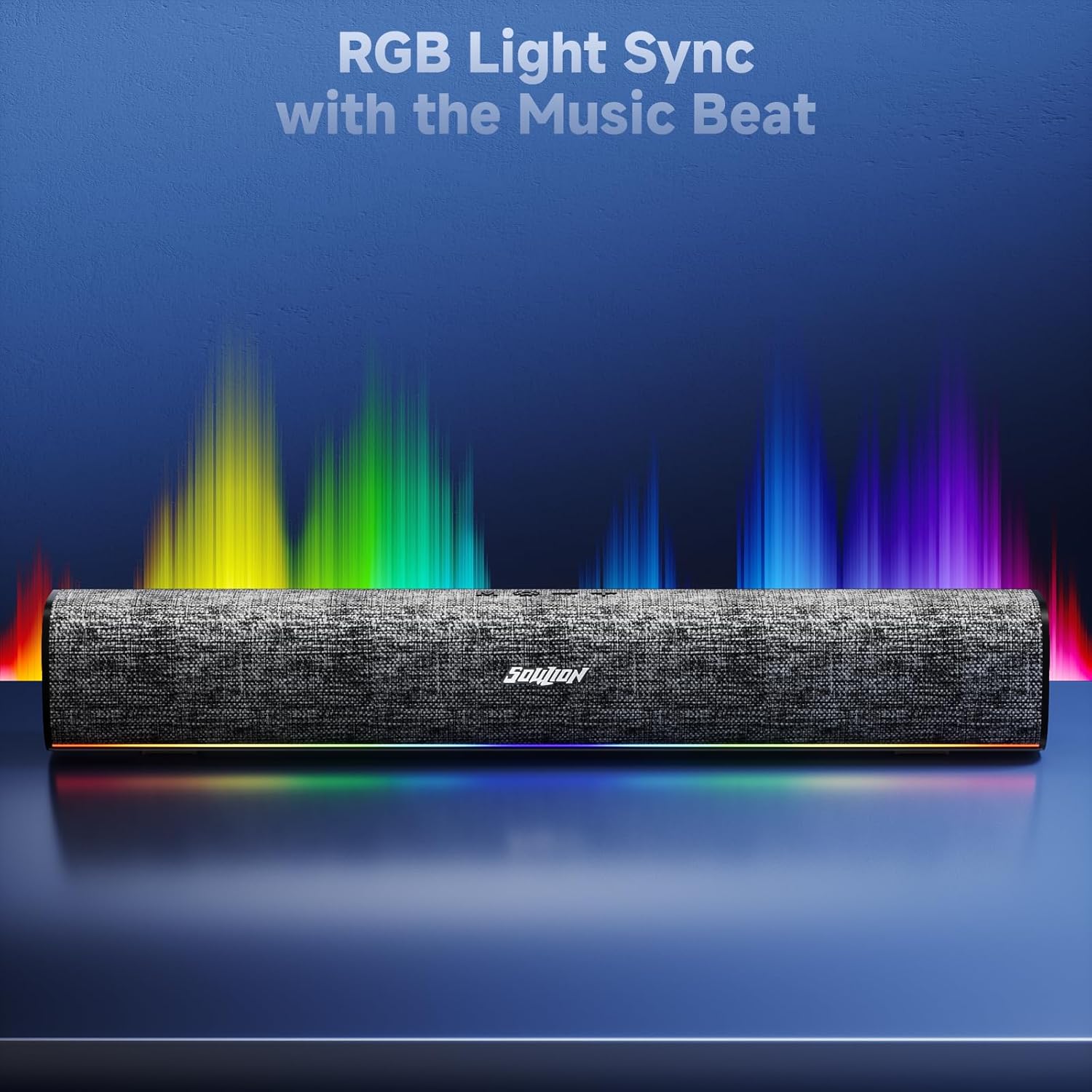 SOULION R100 Plus Computer Speakers with Dynamic RGB Light, Rechargeable Bluetooth Speaker with Switch Button, Clearly Sound Soundbar for Desktop Monitor, PC, Tablets(3.5mm Aux Connection Included)