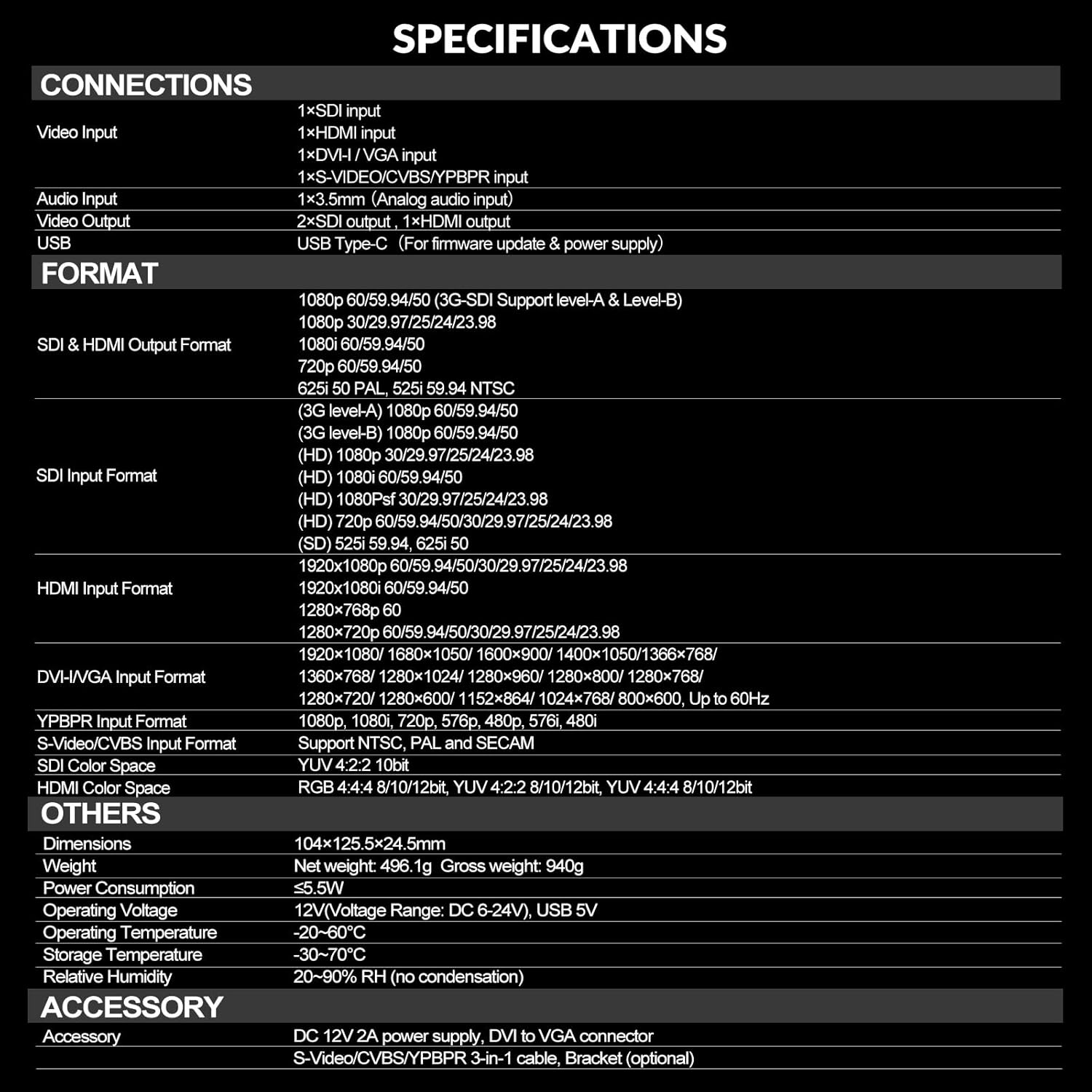 - 【Rugged Metal Enclosure & Future-Proof Design – Built for Professionals】 Designed for demanding professional environments, the SC7030 features a sturdy metal housing, ensuring durability in field productions and mobile broadcasting setups. The LCD menu and easy-to-use controls allow for quick setup, while USB firmware updates ensure compatibility with future video formats and industry standards.