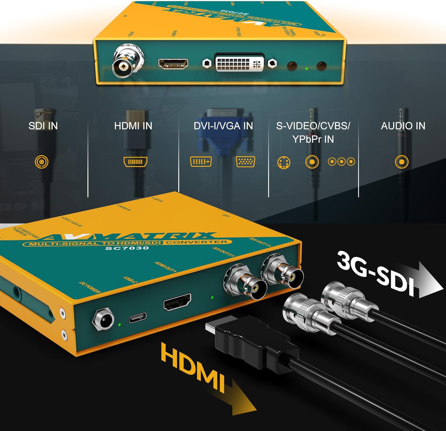 AVMATRIX SC7030 Multi-Signal Converter SDl/HDMl/DVI-I/VGA/CVBS/S-Video/YPbPr to HDMI/SDI,UP/Down Scaling and Frame Rate 1080P Video Converter, SDI Splitter,Audio Embedding & Aspect Ratio Adjustment