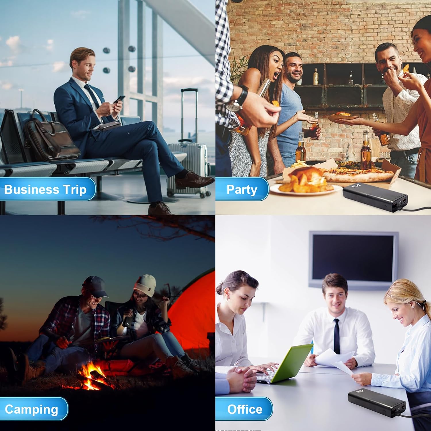 - 【LED Flashlight & Digital Display Travel Battery Pack】Long press the ON/OFF button 3 seconds, you can turn on the high-lumen emergency flashlight. Our portable phone charger provides 50-hour continuous basic illumination during camping power failures or nighttime vehicle breakdowns. The high precision LED digital display allows you know your battery’s remaining power accurately