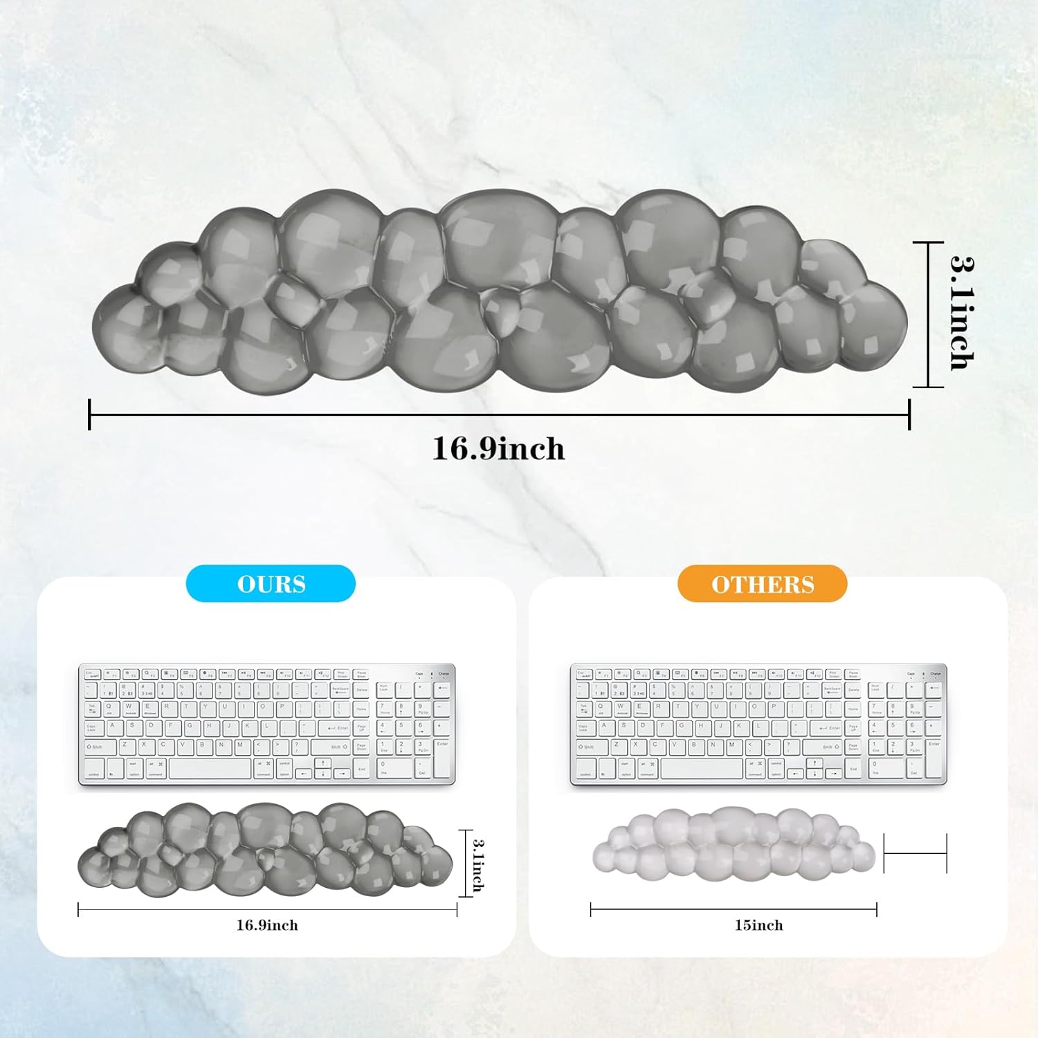 - 【Comfortable Cloud Keyboard Wrist Rest】This cute and soft cloud keyboard pad comes with wrist support and perfectly fits your wrist. The bubble cloud shaped design and soft cushioning provide much-needed comfort during prolonged typing, helping to treat and prevent carpal tunnel syndrome.