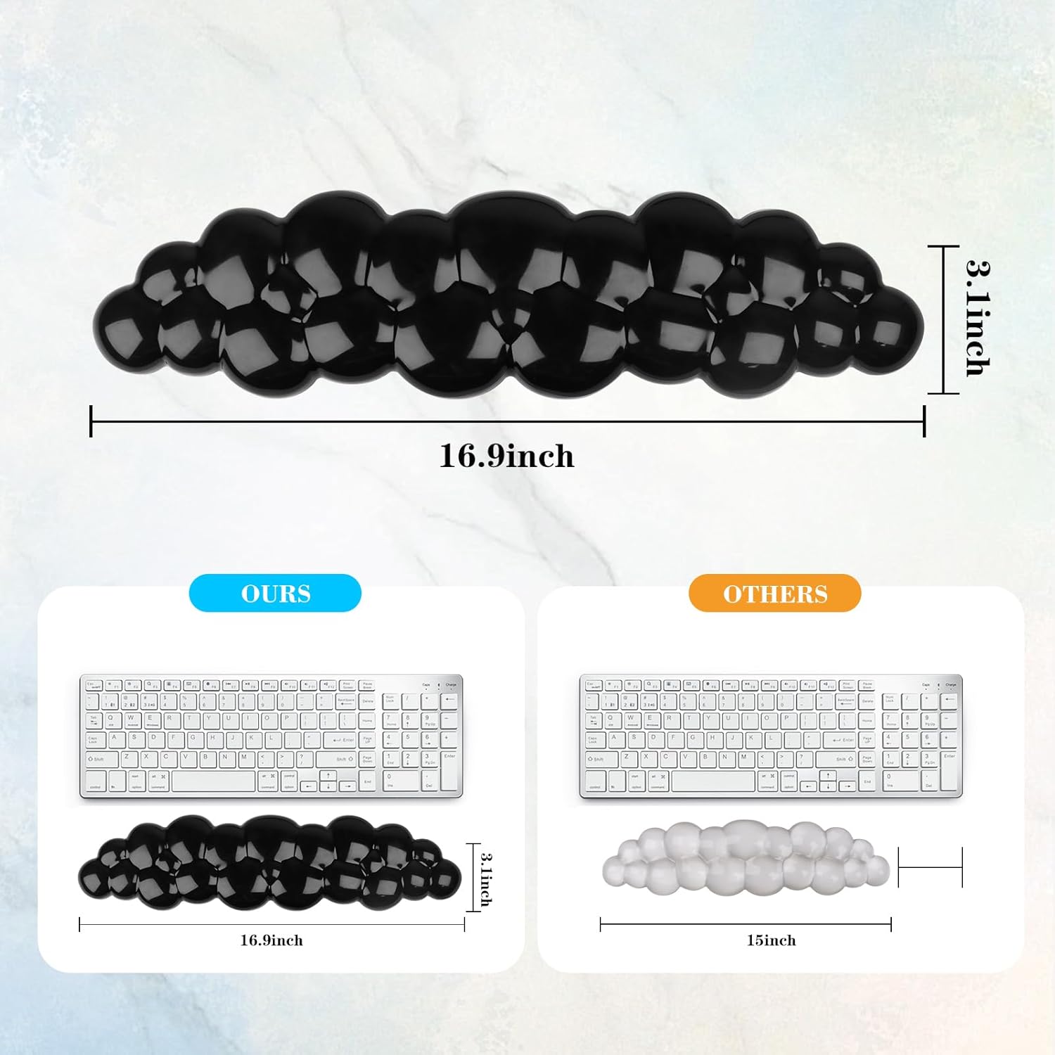 - 【Comfortable Cloud Keyboard Wrist Rest】This cute and soft cloud keyboard pad comes with wrist support and perfectly fits your wrist. The bubble cloud shaped design and soft cushioning provide much-needed comfort during prolonged typing, helping to treat and prevent carpal tunnel syndrome.