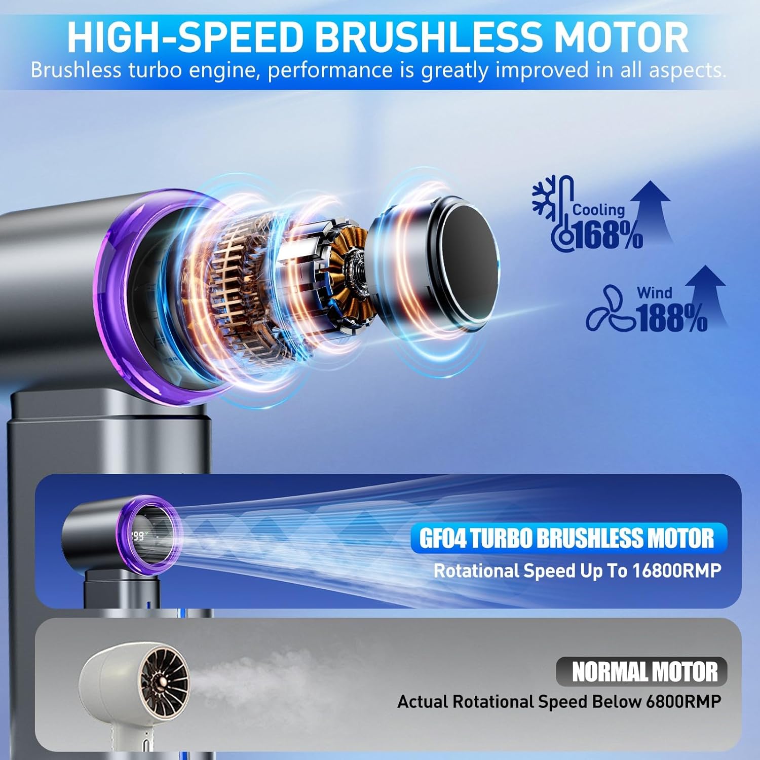 - Special Feature : Brushless Motor, Digital Display, Lightweight, Misting, Portable
