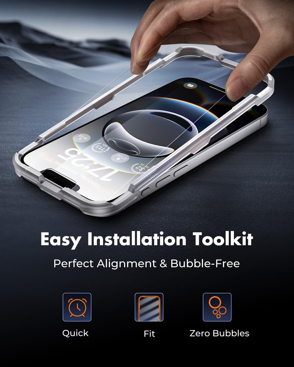 - Super-Easy Installation: This iPhone 16e screen protector kit includes an installation frame, alcohol wipes, dust removal stickers and absorbers, a microfiber cloth, and a guide. Perfect alignment is effortless, even for beginners.