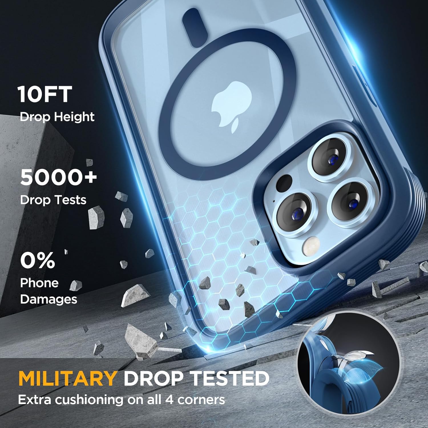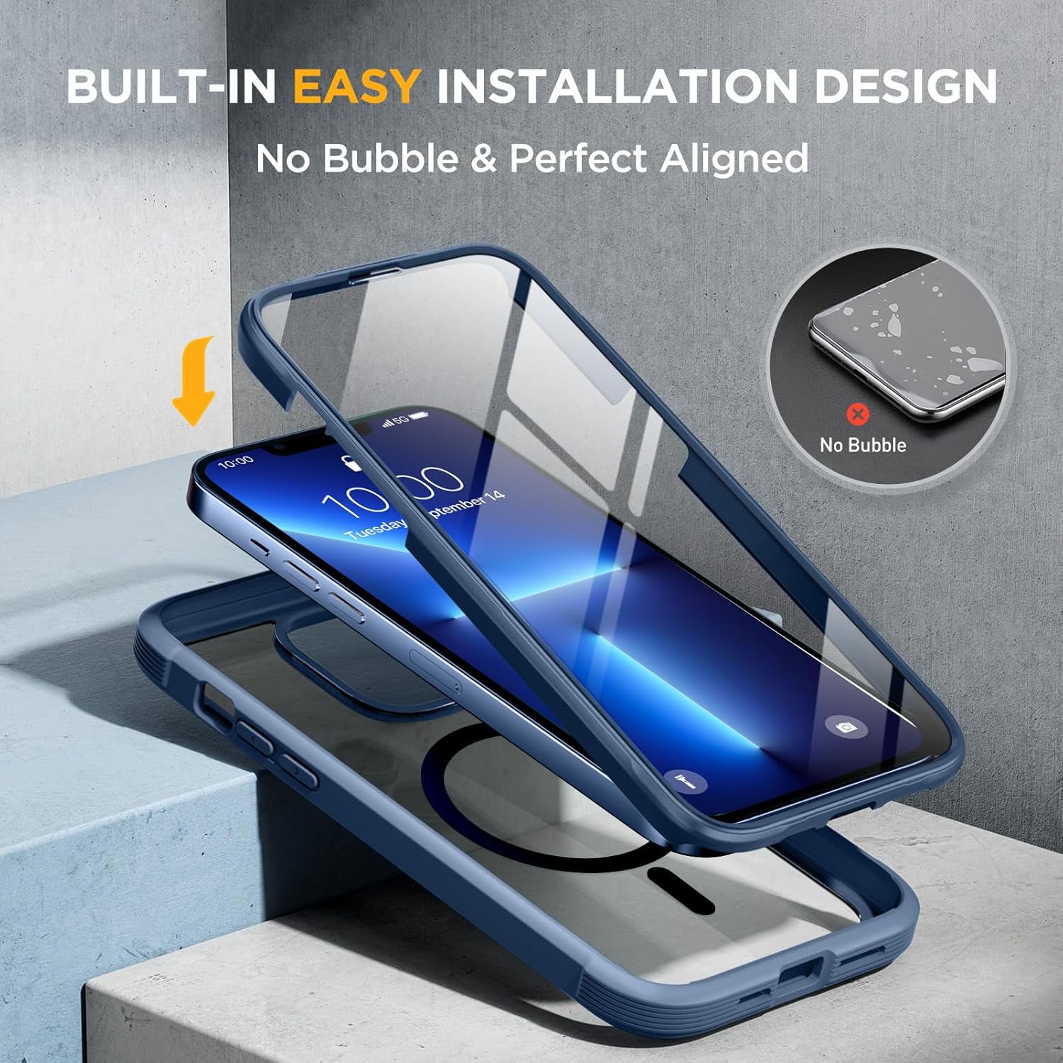 Miracase Magnetic Glass for iPhone 13 Pro Case,Compatible with MagSafe,Full-Body Bumper with Shockproof Military-Grade,Built-in 9H Tempered Glass Screen Protector for iPhone 13 Pro,Dark Blue