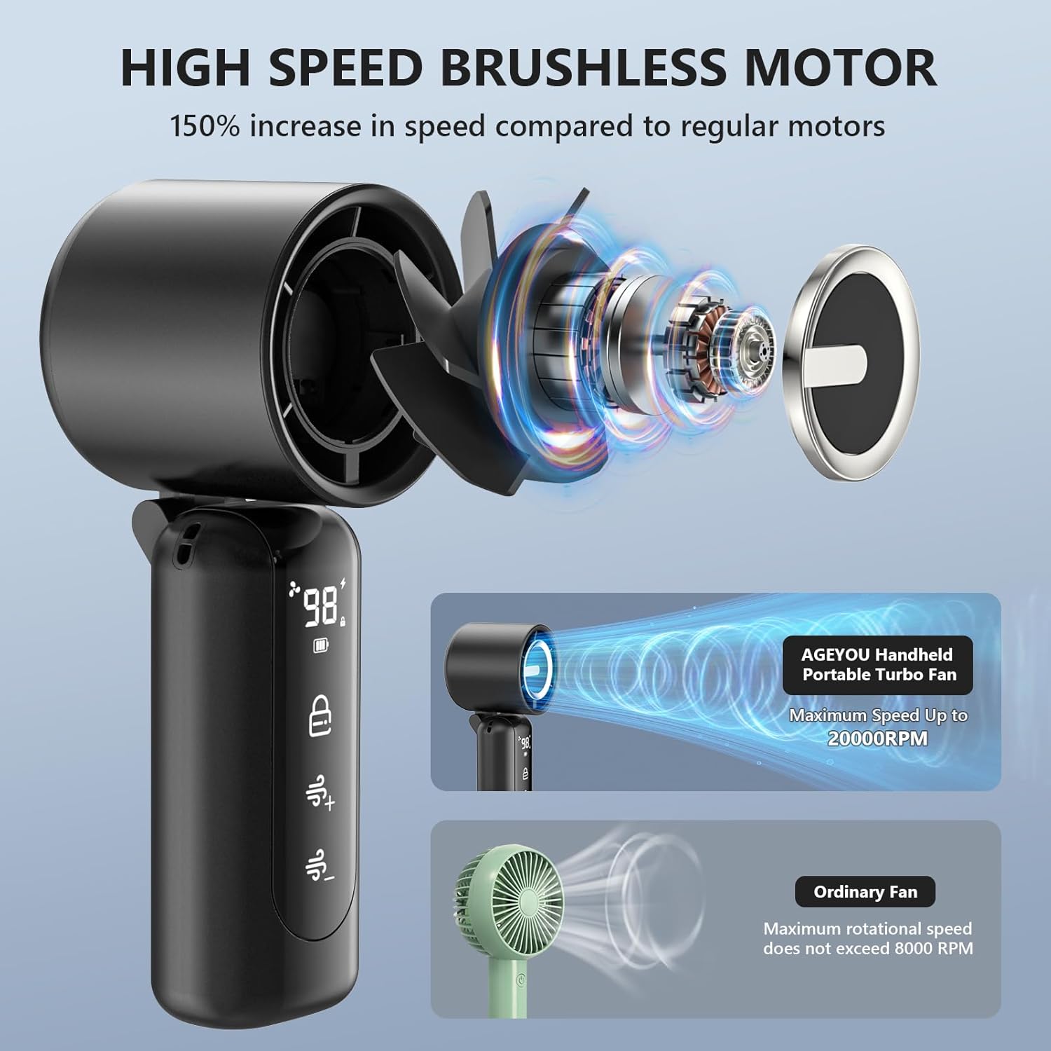 Portable Handheld Mini Fan,Speed(1-100) Adjustable Turbo Personal Fan,4000mAh Battery Rechargeable,AI Digital Display,Gifts for Women Men Camping Travel Summer Outdoor