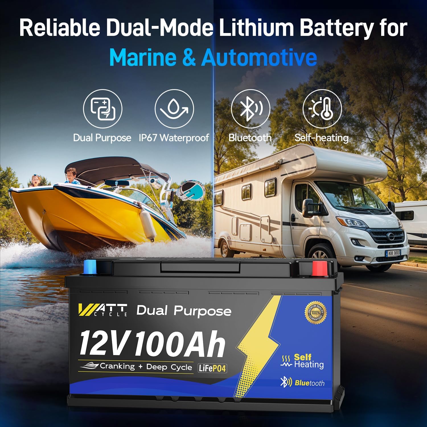 12V 100Ah Bluetooth LiFePO4 Battery, [Cranking &Deep Cycle] Lithium Battery with Self-Heating, Built-in 200A BMS, Perfect for Trolling Motor, RV, Marine, Boat(3 Pack)