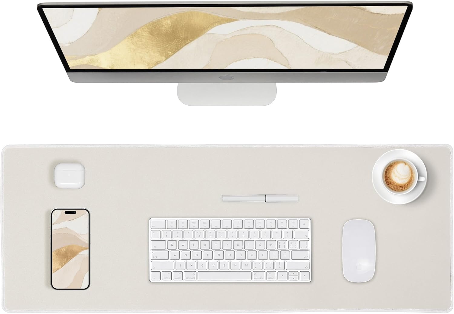ALOANES Waterproof Mouse Pad with Durable Stitched Edge, XL Gaming Keyboard Pad, Non-Slip Rubber Base Mouse Mat, Extended Desk pad for Gamer, Office & Home, Beige Mousepad 27.6''x 11.8''x 0.12''