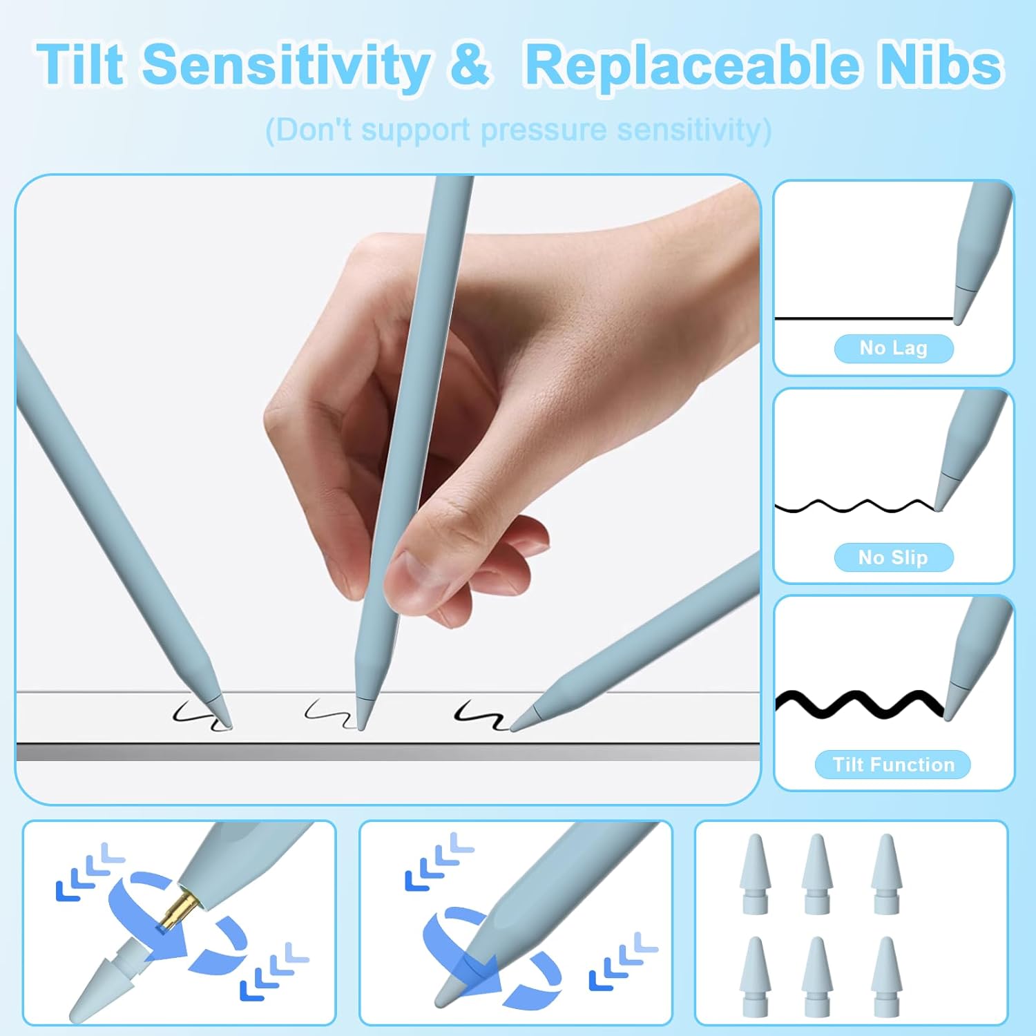 - Tilt Sensitivity: Peaboni stylus pen for iPad 10th generation is equipped with 1.5mm POM nib gives high sensitivity and accuracy, with no lag, no skipping, no scratches and no delays. Built-in tilt-sensing technology,allowing tilt the stylus at different angles to precisely control and change line thickness and shading,making writing and drawing more free. And we also provide 6 replacement nibs, you can change the POM nib if you feel the used nib not sensitive(Please kindly know that our pencil don't support pressure sensitivity)