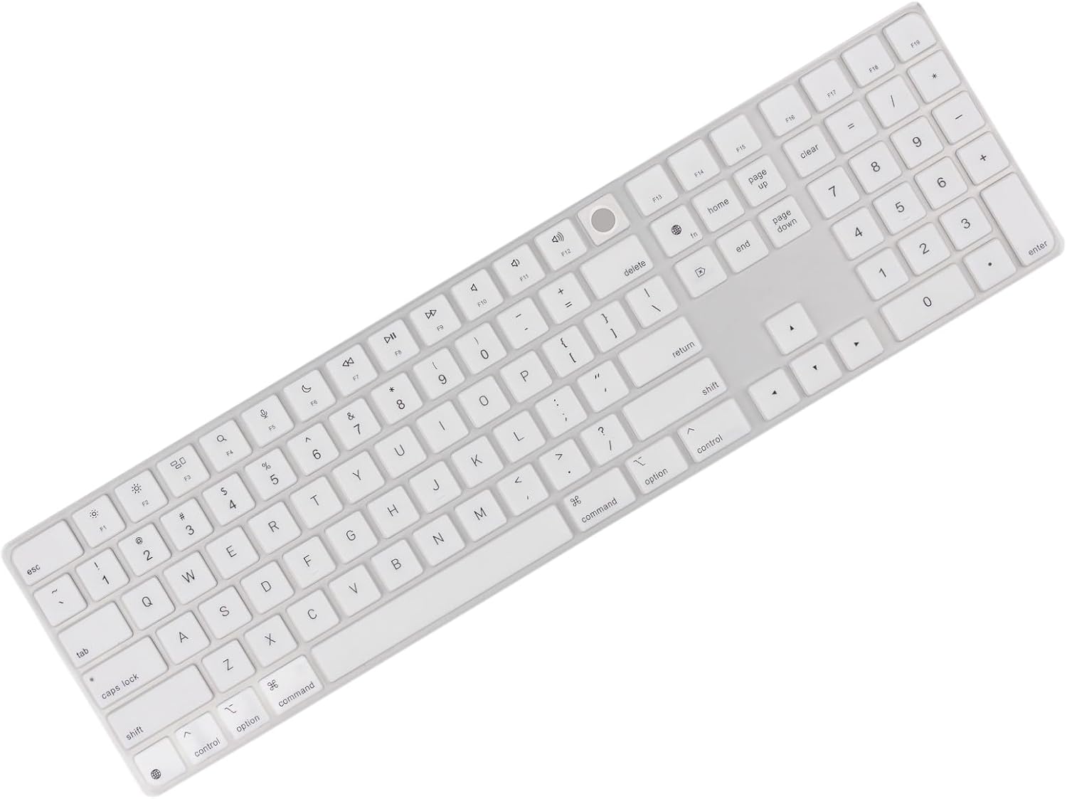 Allinside White Keyboard Cover for 2024 Mac Magic Keyboard with Touch ID and Numeric Keypad A3119 US Layout