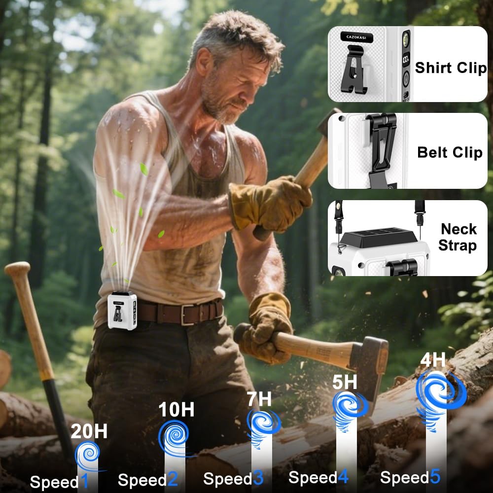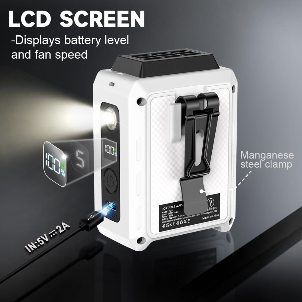 CAZOKASI Personal Waist Clip Fan Rechargeable Wearable Hand Free Wearable Cooler Fan for Traveling Working Outdoor Office (5000mAh / White)