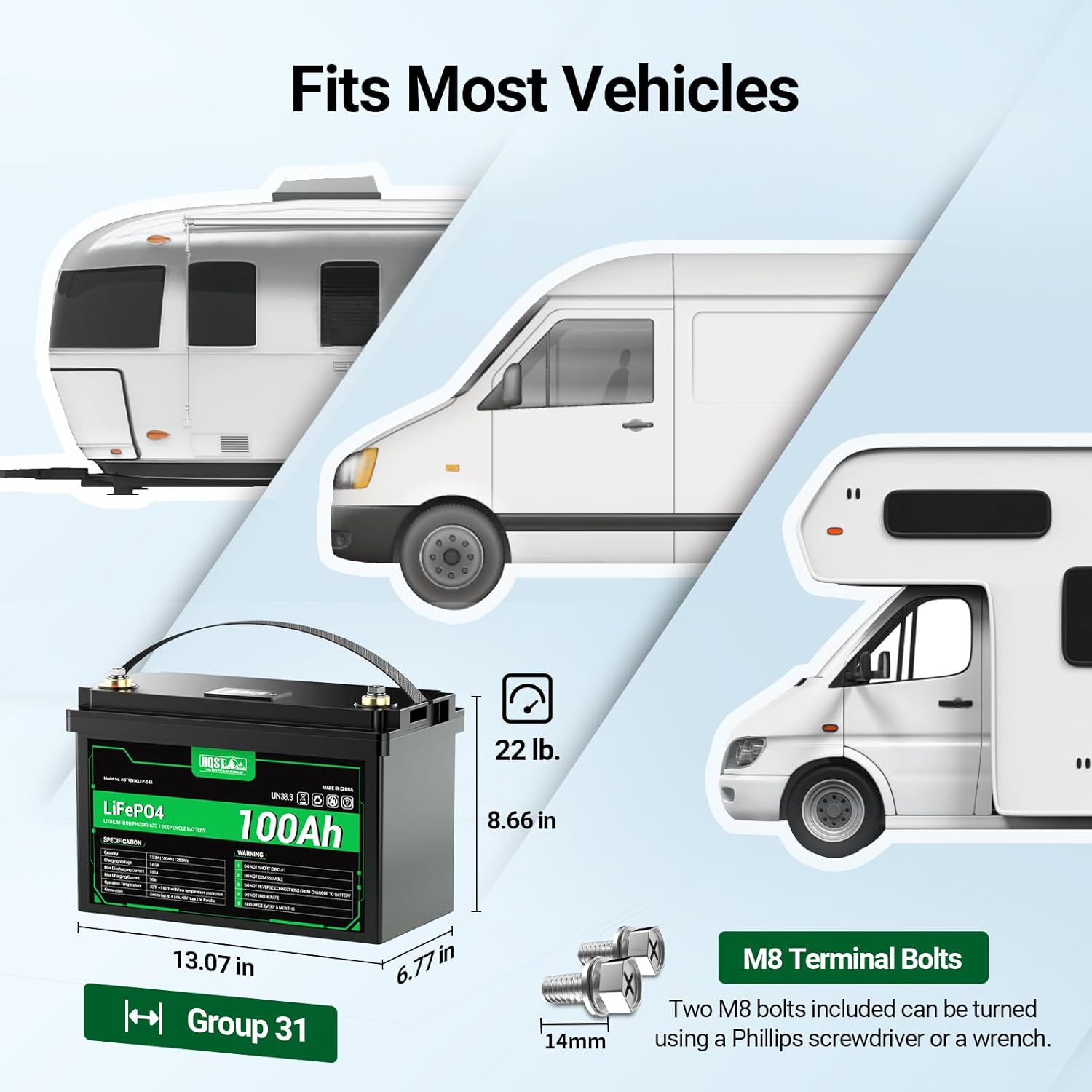 - 【10-Year Lifespan & Upgraded BMS】The HQST 100Ah LiFePO4 battery is built to last, backed by 10-year product support and long service life. It features an advanced built-in BMS with 20+ layers of protection, including low and high-temperature cut-offs. This protects your battery during charging and discharging, even in extreme conditions. Plus, all internal battery cells are UL tested and certified to ensure maximum safety and reliability.