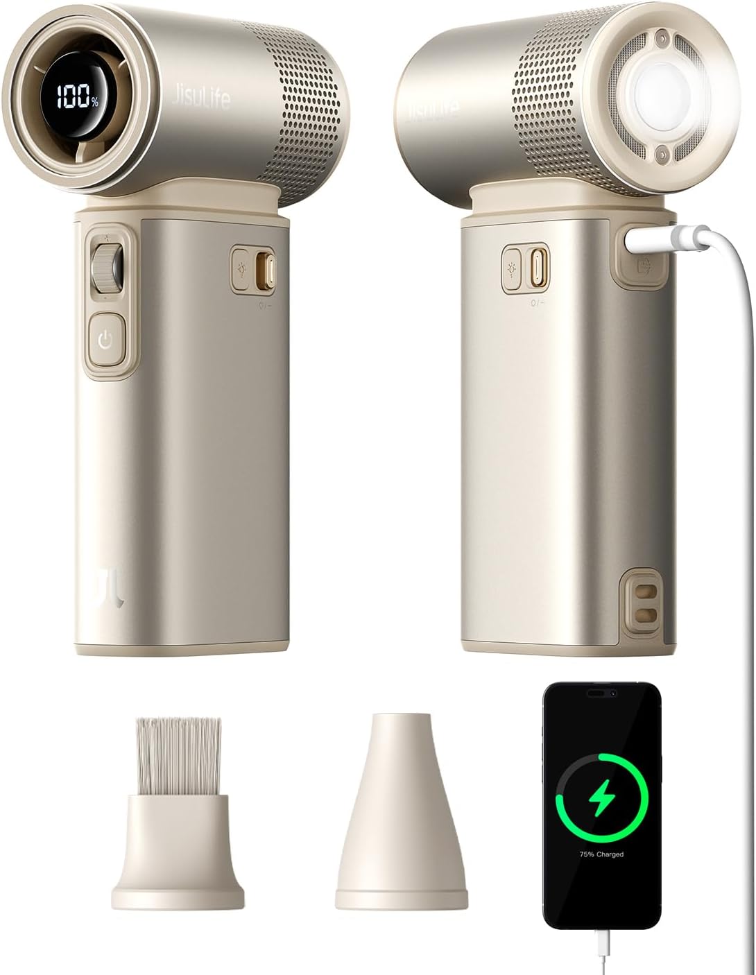 - Portable and Versatile: Travel fan is compact and equipped with 2 magnetic air nozzles, can be used as a dust removal tool and inflation pump. Metal shell structure ensures durability, mini design makes it easy to carry, whether going cruise, beach, camping, climbing, or to concerts, it's the best choice.