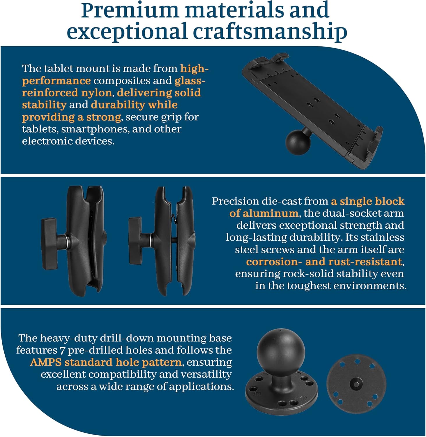 Heavy Duty Tablet Mount for Truck, Aluminum Drill Base Tablet Holder, Compatible with 7.5''-10.2'' Tablets/iPad, Industrial iPad Holder for Wall, Truck, Warehouse,Dashboard,Boat