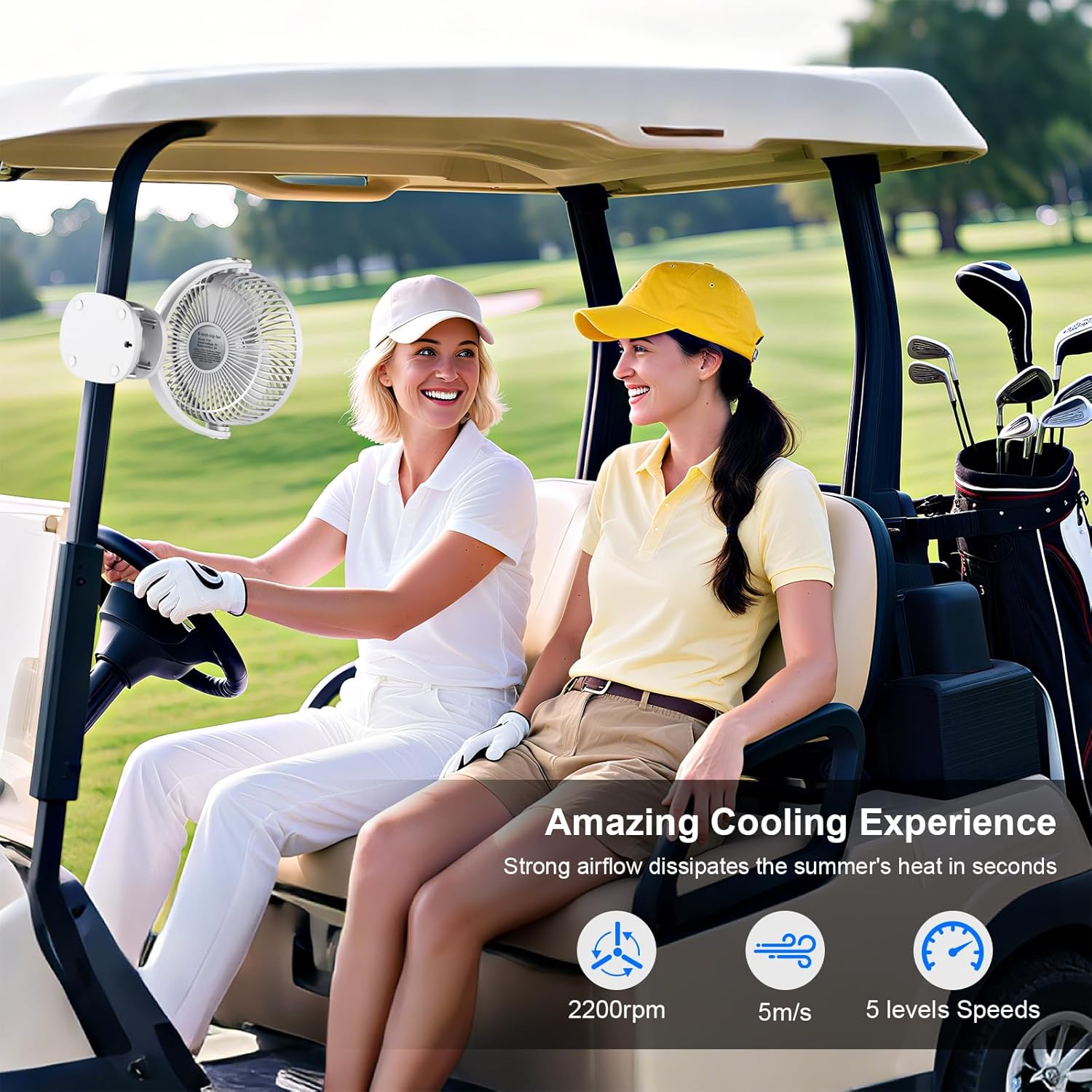 iNeibo 10000mAh Portable Clip on Fan, 90° Oscillating Fan, 8 Inch Rechargeable Battery Operated Desk Fan, Strong Airflow, 5 Speeds, Sturdy Clamp for Golf Cart Home Office Outdoor Travel (White)