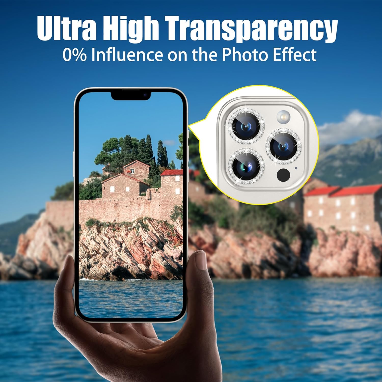 - ⭕[Two Bling Effects] There are 3 bling diamond rings and 3 bling glitter rings in the package. Free to match according to your own personal preferences. These rings glass are optical grade, protect your iPhone 15 Pro / 15 Pro Max camera lens from damage and scratches and has no effect on taking photos. Fully high transmittance sapphire glass with AR anti-reflection function: Camera anti-fall protection and Bling Bling Effect and Fully restored image quality.