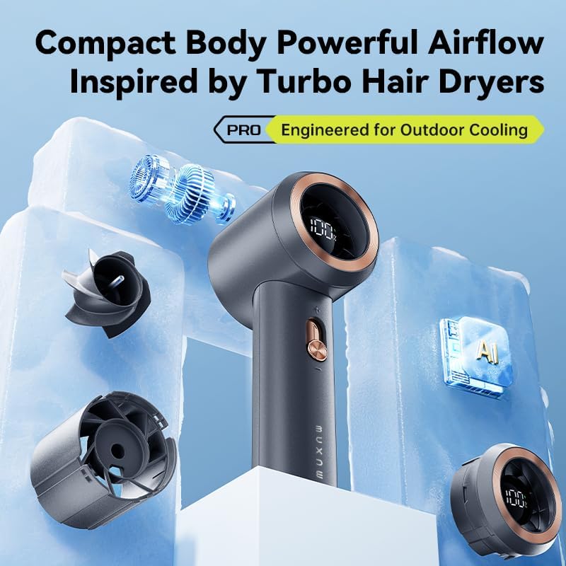 - 100-Level Digital Display Power Reminder: This device is equipped with a high-definition digital display screen that shows the current wind speed and remaining battery power. You can schedule charging in advance to ensure a cool companion on every trip