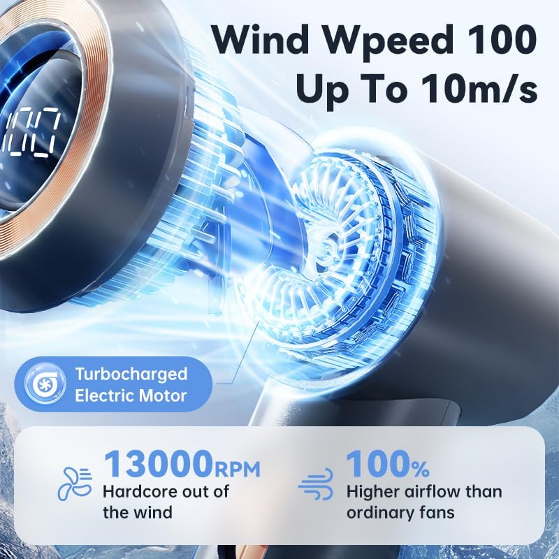 - Mini turbo jet fan: It features a 100 Level high-speed, powerful 10 m/s airflow, powered by a 3-phase brushless electric motor running at 13,000 RPM, delivering fast and strong performance. With adjustable speed (1-100 levels) and a bladeless design, it ensures safety for kids and teens.
