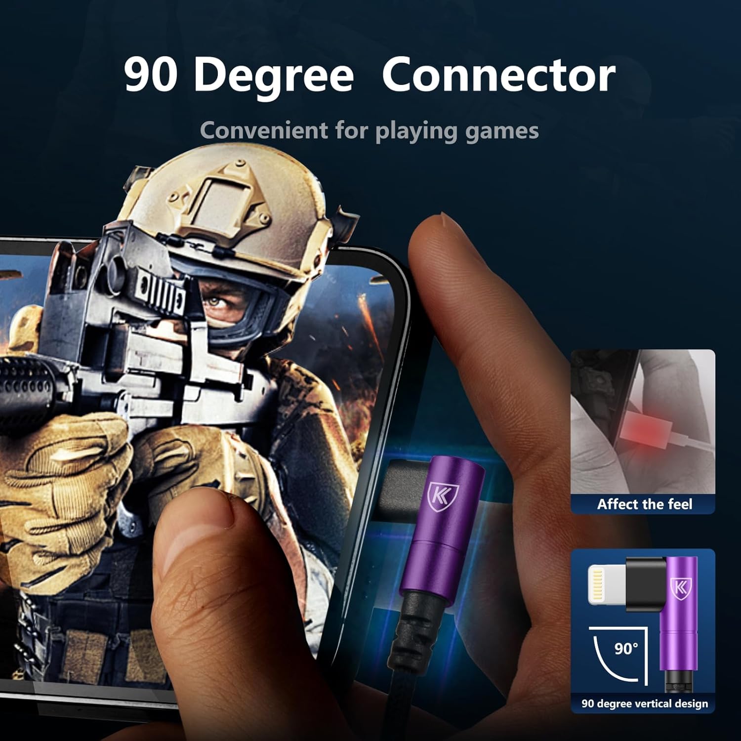 - 90 Degree iPhone Charger Cable: The 90 degree USB C to lightning cable 6ft comes with L shapes connections (Lightning end), which can fit the device sideways. 90 degree extra long 6 foot iPhone charger cord is more convenient for playing games, watching video when you while charging.