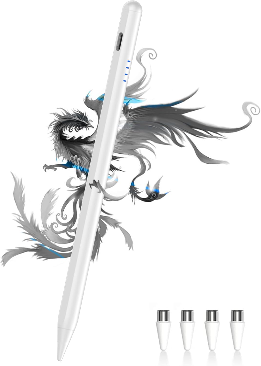 - 【Easy to Use & LED Power Display】 : Quickly tap the top button twice to turn it on/off. The touch screen pen can be used immediately and no Bluetooth connection is required. The iphone pen is equipped with a 4-LED indicator light on the side, allowing you to check the power status in real time, which is worry-free. It will automatically shut down after 5 minutes of inactivity, which is highly efficient and energy-saving