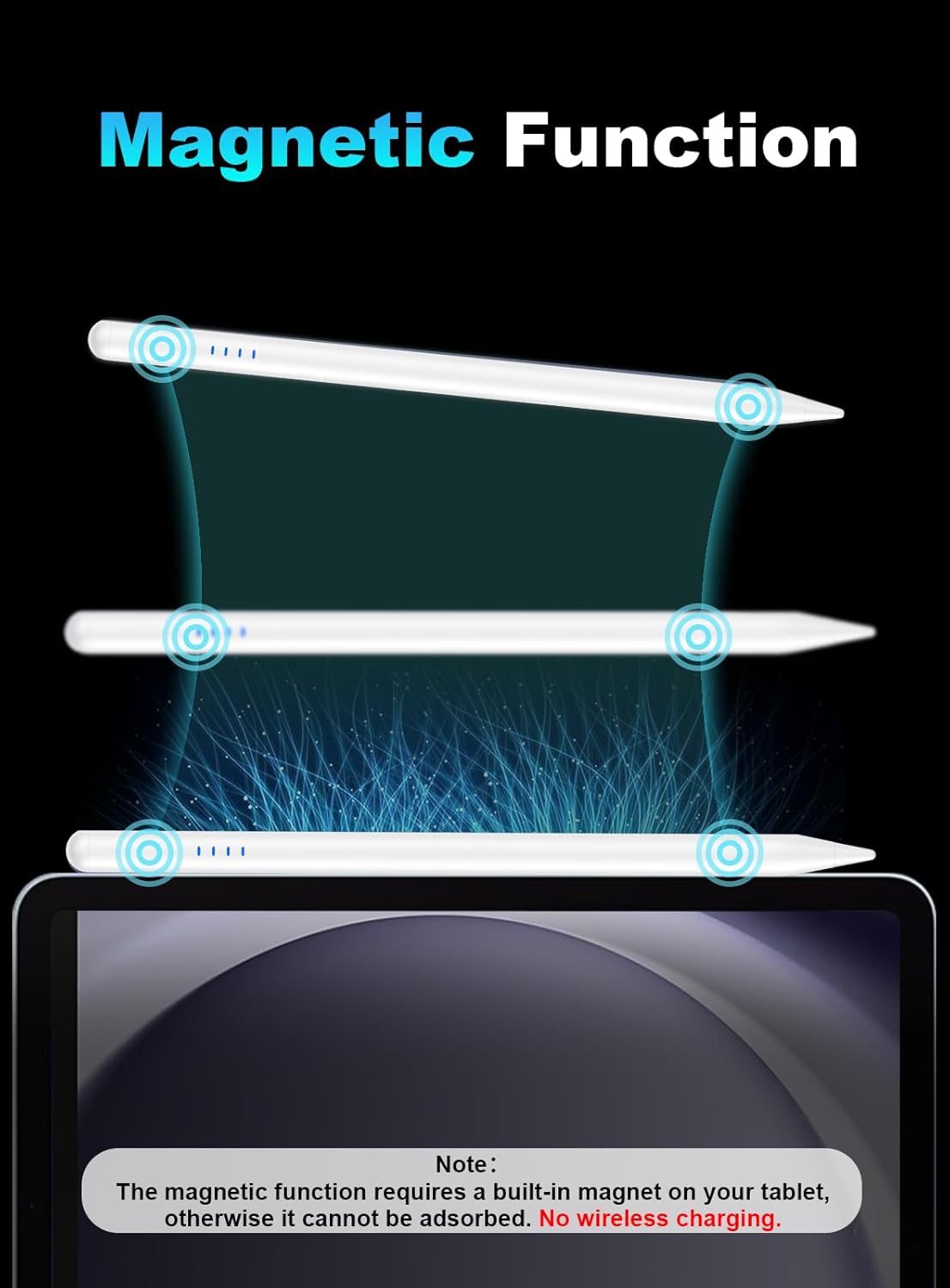 - 【Magnetic Design】 : This stylus for sumsung A9+ is equipped with two magnets. You can attach the stylus to the side of your tablet device for convenient storage and use. Tablet devices also need to have built-in magnets; otherwise, the stylus cannot be magnetized either