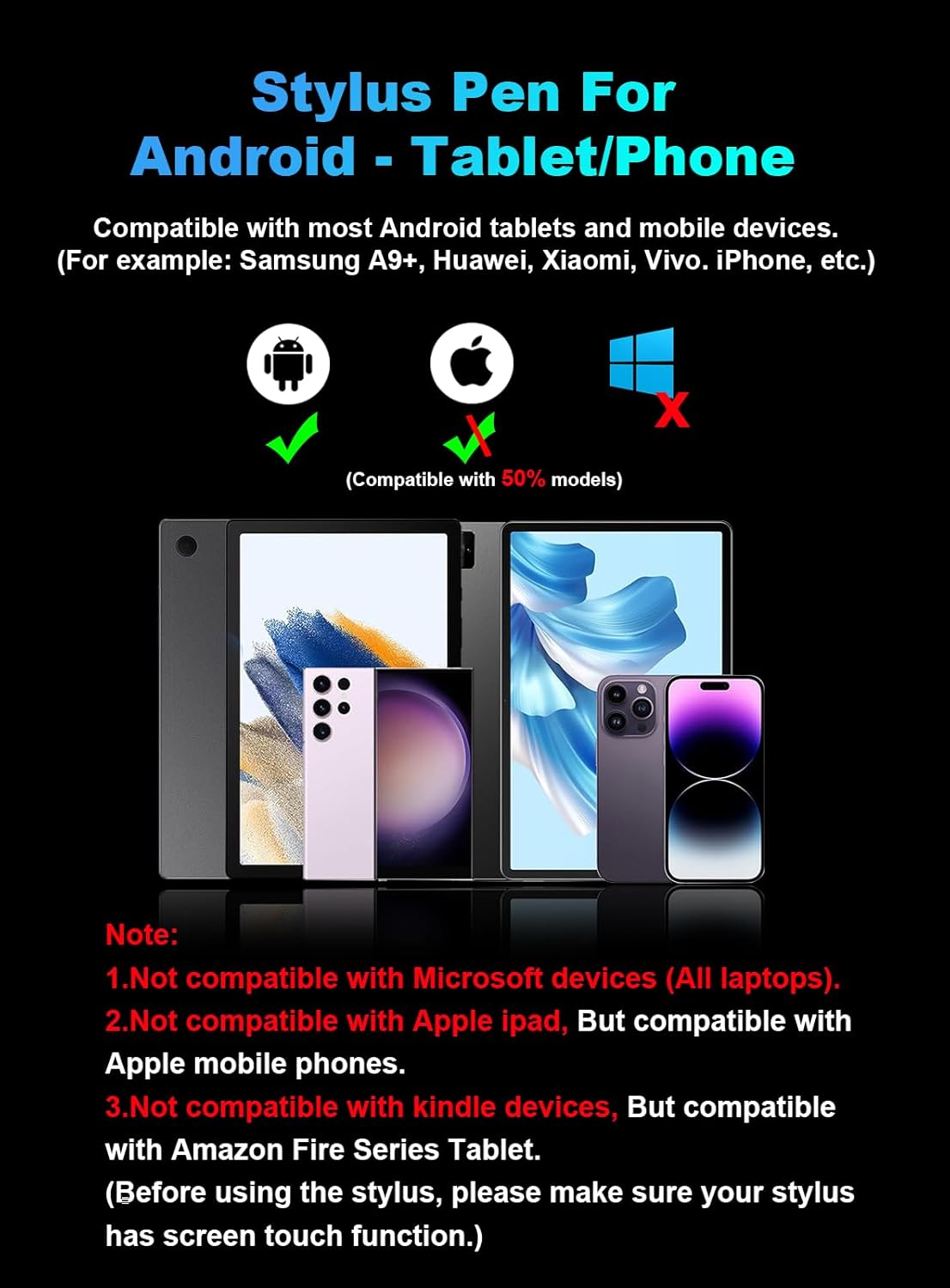 - 【Compatibility Design】 : The DOGAIN A16U stylus pen has enhanced its compatible with Android tablets(Samsung A9+/Lenovo/Huawei/XiaoMi/ViVo) and Phones (iPhone 6-16/Android Phone. (Note: Not compatible with any model of Laptop, Microsoft system device, Apple iPad, and Amazon Kindle, Please check your device model before placing an order)