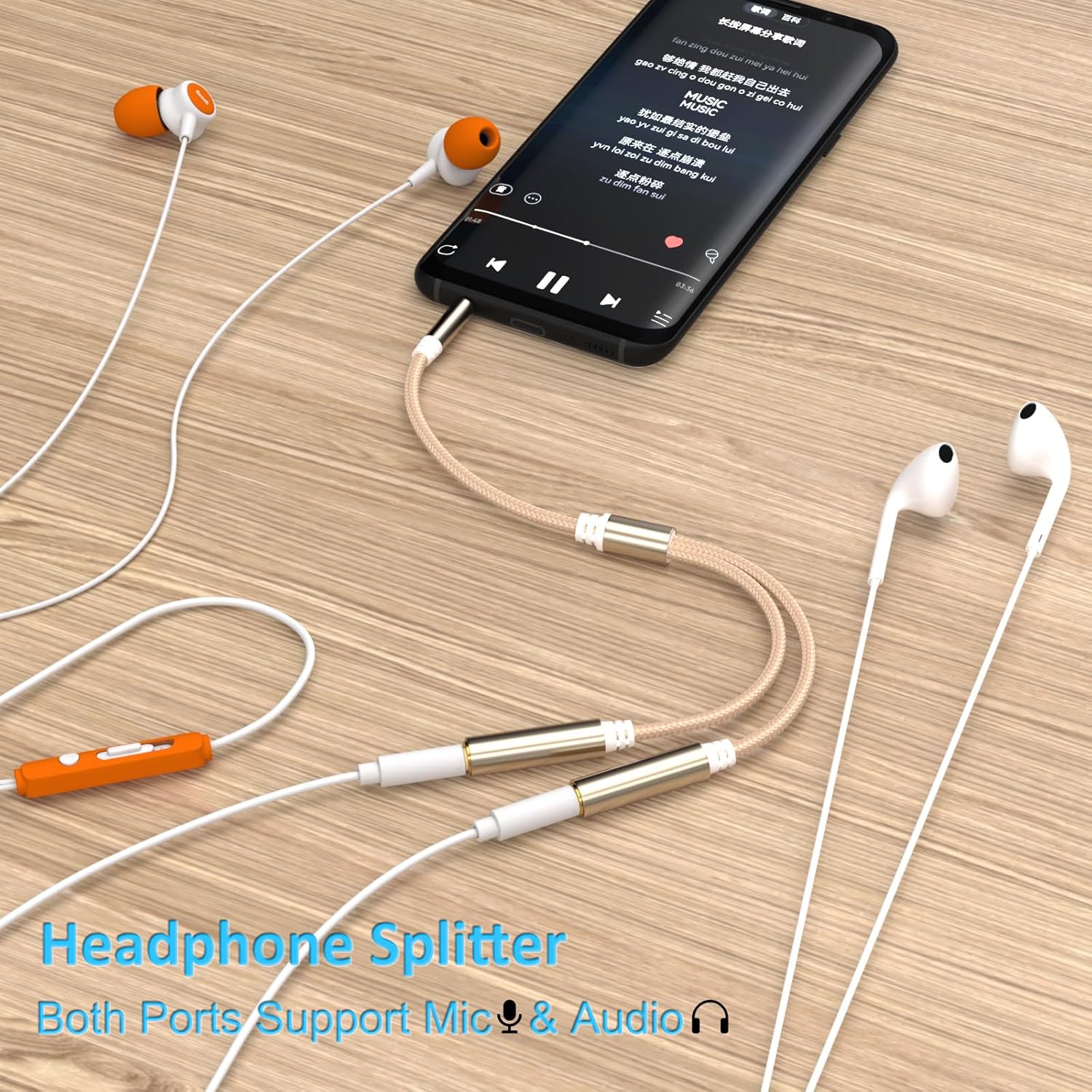 3.5mm TRRS Splitter for 2 Headphones 1FT 2-Pack, Audio & Mic, 3.5 mm Aux Jack Cable 1 in 2 out, Dual 1/8" Stereo Female Adapter, Double Headset Split Y Cord 2 Way for Phone/Tablet/Laptop/PC/MP3, Gold