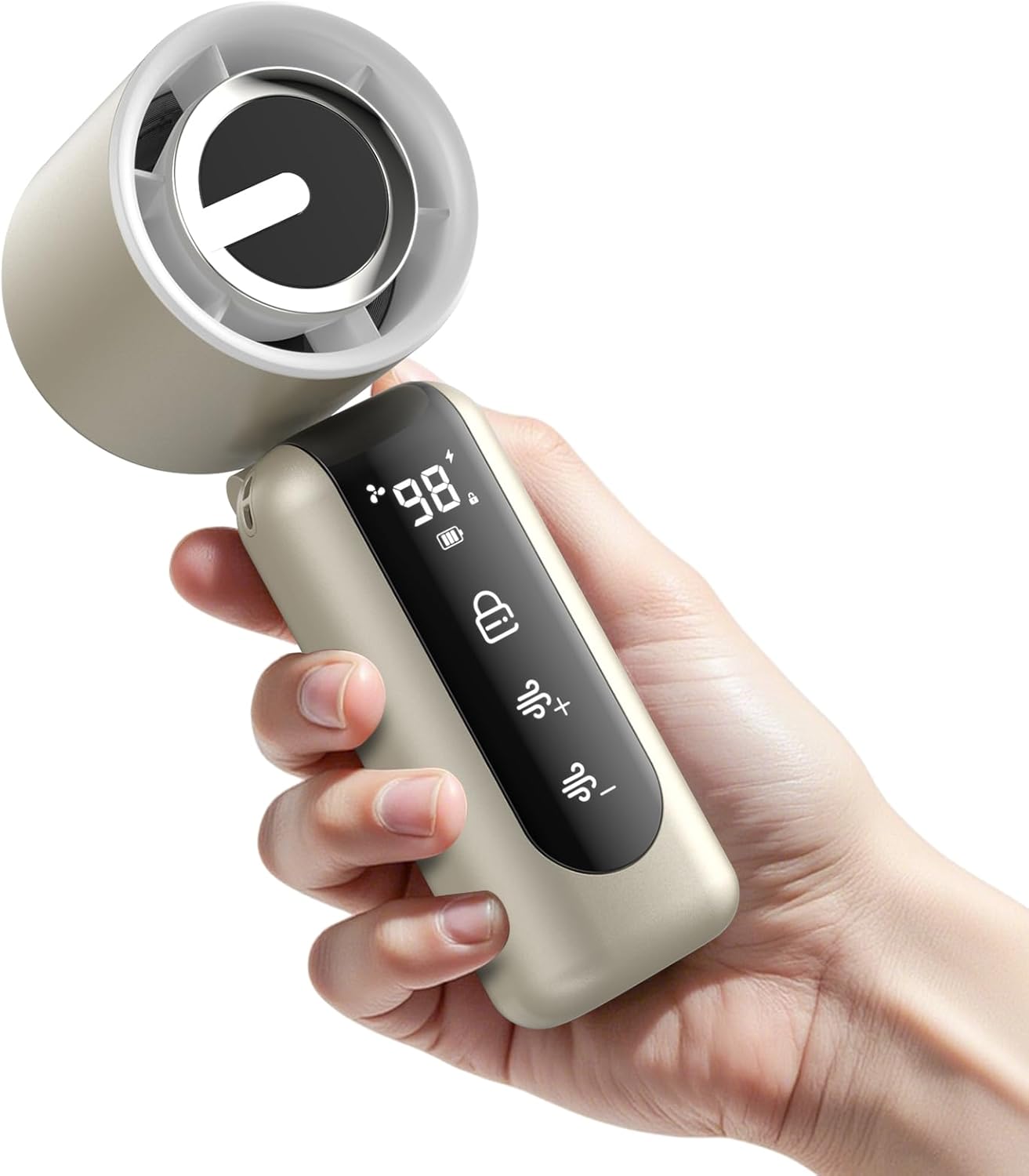 - 🔒[Digital Display - Anti-touch Function] The fan is equipped with a high-definition digital display, which shows the current wind speed gear and remaining power, as well as an anti-touch locking button, which can be locked with one key for peace of mind. When this mini fan is low on power, you can schedule a charge in advance to ensure a cool companion for every trip.
