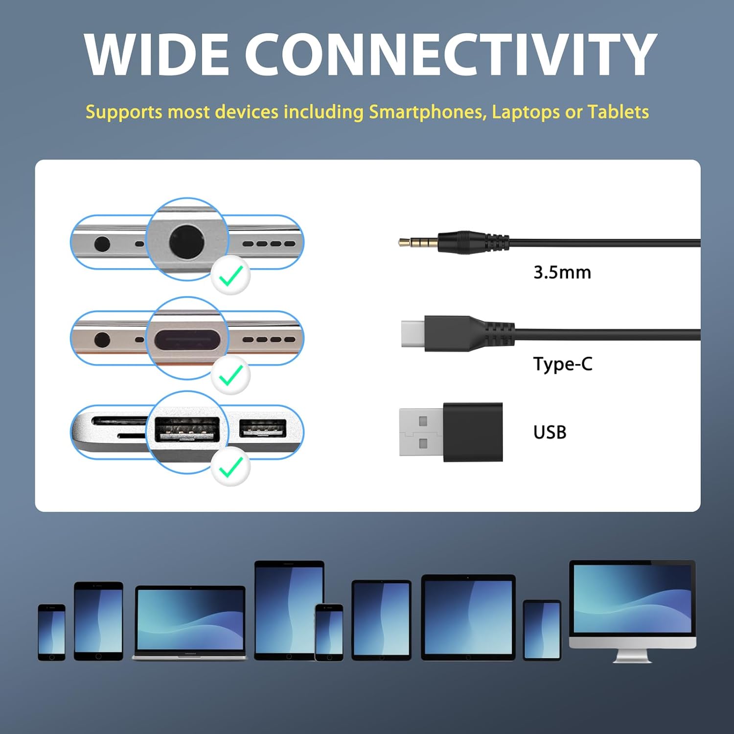 - 【3-in-1 Connection & Mute Control】Equipped with both USB-A, USB-C, 3.5mm connectivity options.This headset with microphone for pc is convenient and fast to use. The connection is recognized almost instantly. PC headset are equipped with control buttons and status indicators, you can effortlessly mute calls.