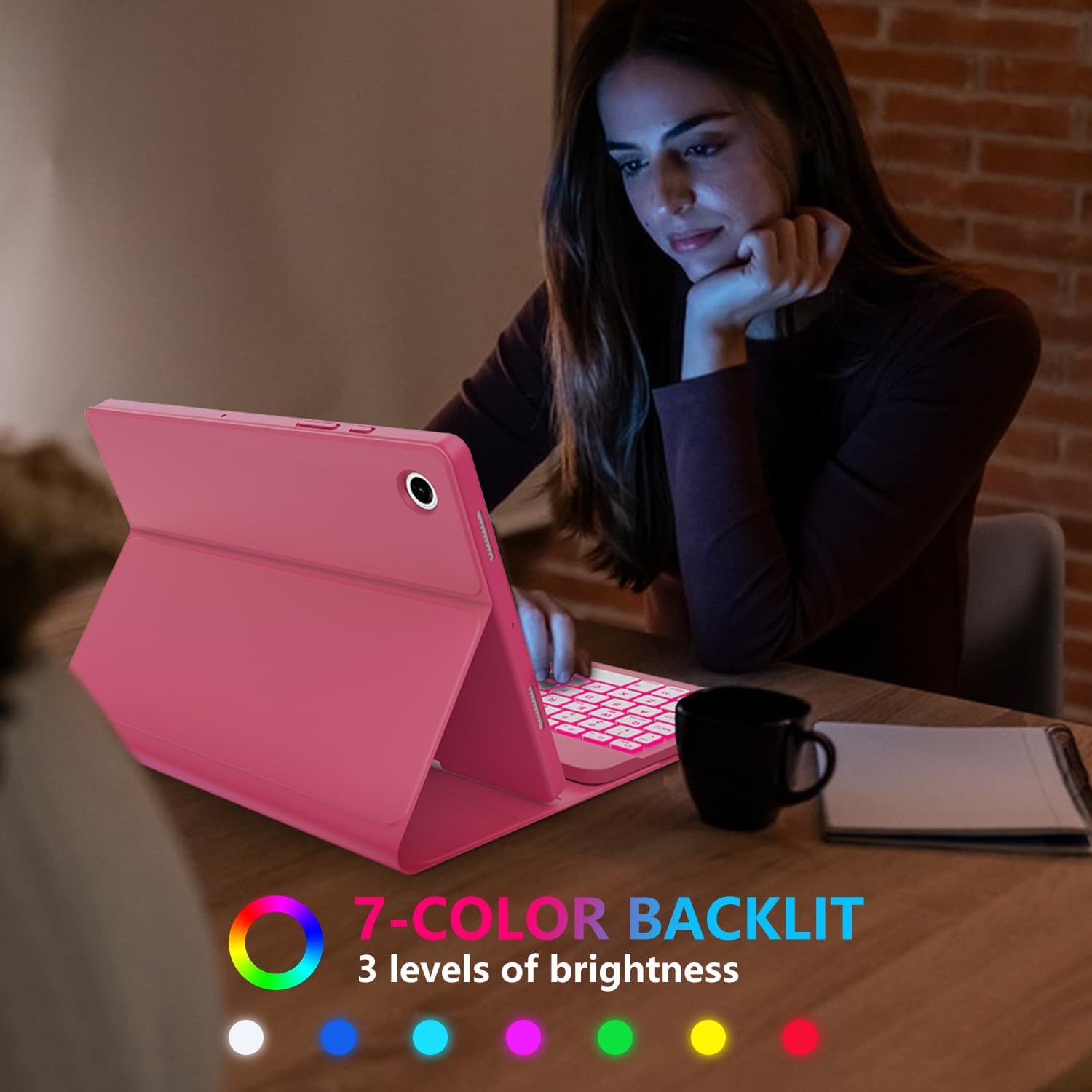 - ✅【7 Color Backlit Keyboard】Enjoy customizable typing experiences with the stunning 7 color backlit Bluetooth keyboard, which not only enhances visibility in low light but also adds a touch of style to your tablet setup. Whether you're using it for work, creative projects, or personal use, this keyboard enhances both functionality and aesthetics, making it a valuable accessory for tablet users who seek both performance and style.