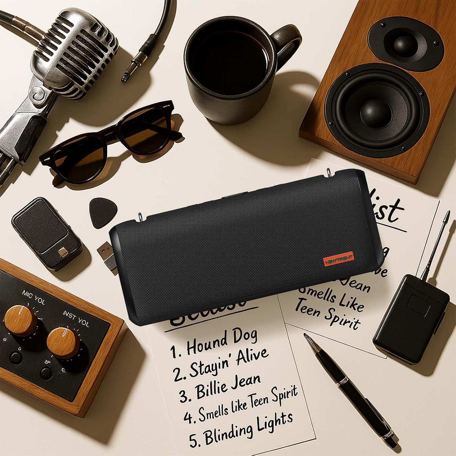 - IPX65 Waterproof & Rugged – Built tough for outdoor adventures. Enjoy worry-free music around pools, beaches, patios, garages, camping sites, or tailgates. Waterproof and dustproof for complete peace of mind.