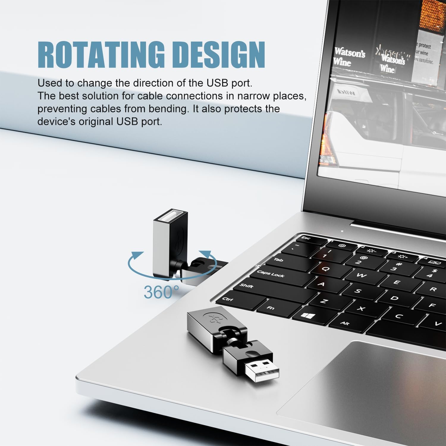 - 【Rotating Design 】Used to change the direction of the USB port. The best solution for cable connections in narrow places, preventing cables from bending. It also protects the device's original USB port.