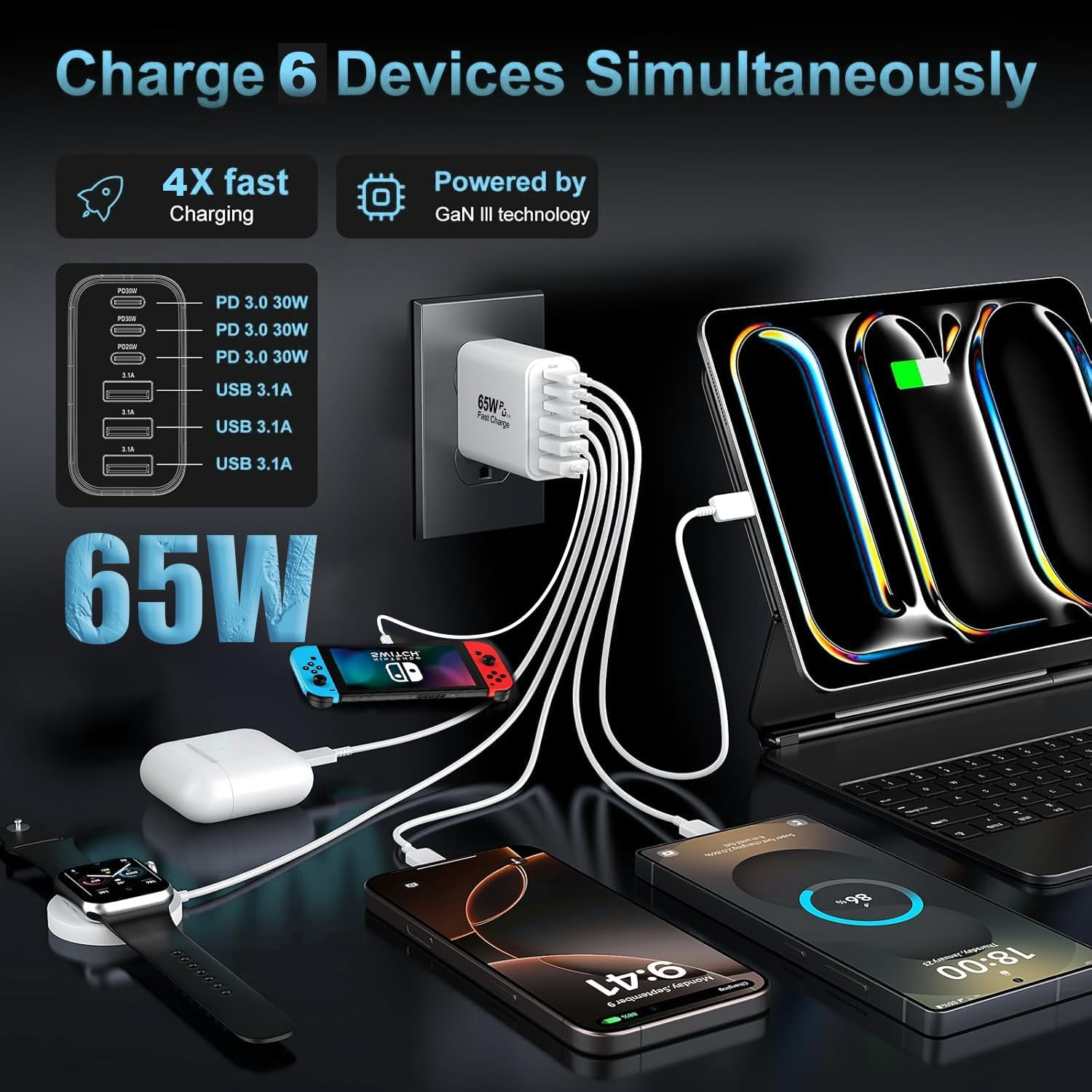 - 👍Due to the special 6-port,the USB charger is compatible with almost all electronic devices,charging adapter for iPhone 16/iPhone 16 Pro/iPhone 16 Pro Max/iPhone 15 Plus/iPhone 15/iPhone 15 Pro/iPhone 15 Pro Max/iPhone 14/iPhone 14 Pro/iPhone 14 Pro Max/iPhone 13/iPhone 13 Mini/iPhone 13 Pro Max/iPhone 12/iPhone 12 Pro Max/iPhone 12 Pro Max/iPhone 12 Mini/iPhone SE 2020/iPhone 11/iPhone 11 Pro/iPhone 11 Pro Max/iPhone XR/iPhone XS/iPhone X/iPhone 8/iPhone 7,iPad Air/Pro/Mini,Samsung Galaxy S25/S22/S21/S20/S10/S9/S8/A12/A13/A22/A32/A52/A53/A71/Note 20 10,Tablets,LG,Google Pixel and other digital devices compatible