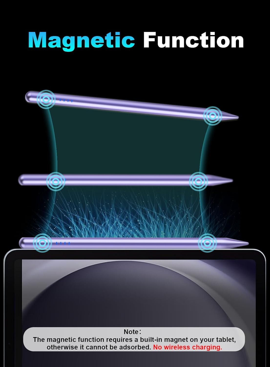 - 【Magnetic Design】 : This stylus for sumsung A9+ is equipped with two magnets. You can attach the stylus to the side of your tablet device for convenient storage and use. Tablet devices also need to have built-in magnets; otherwise, the stylus cannot be magnetized either