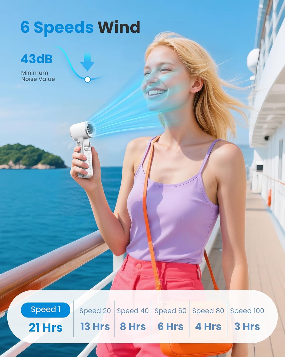 - 6 Speeds Adjustable and Quiet : Our handheld fan provides powerful airflow,offers 6 speeds that the air speed increases 20 gears each time, gradually from 1 to 100 gear. Personal fan has low noise,ultra-quiet,ensuring you can sleep and work efficiently.