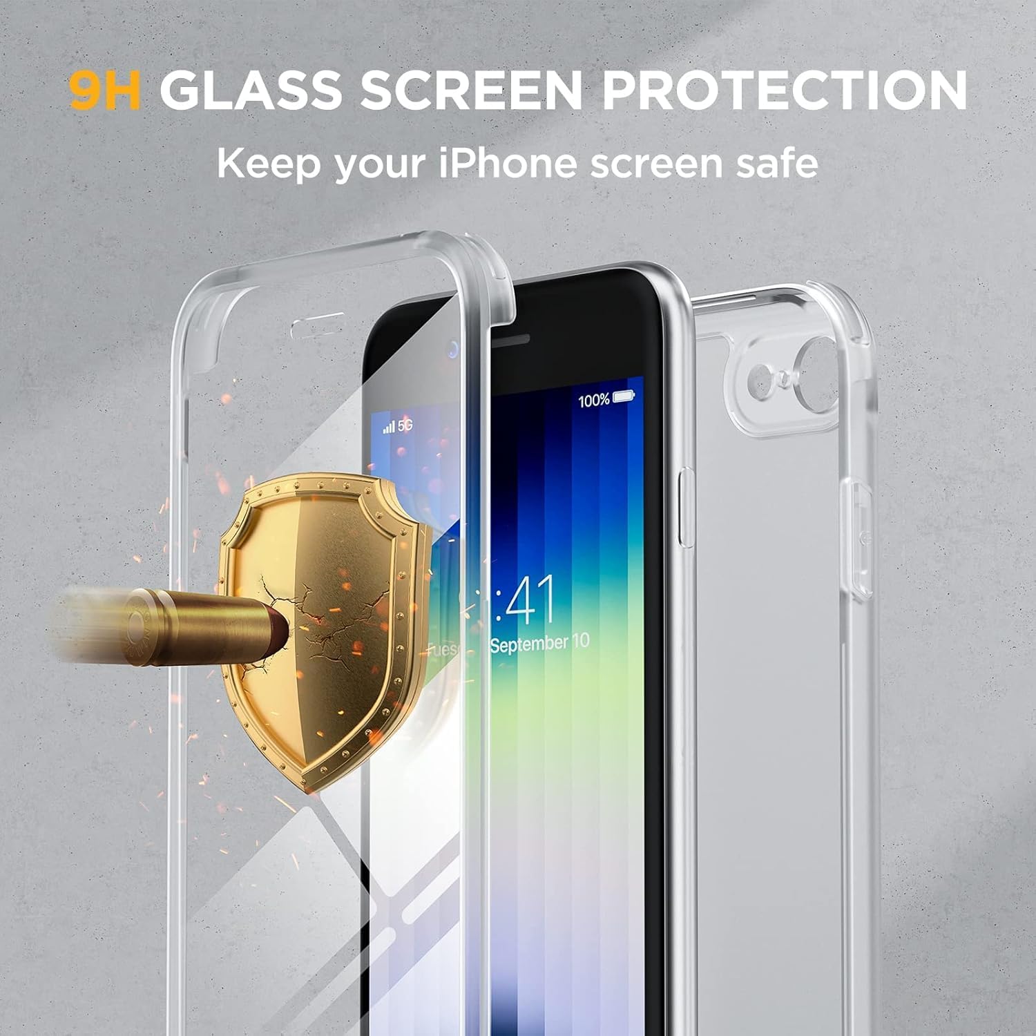 Miracase for iPhone SE Phone Case 3rd/2nd Generation 2022 2020 Full-Body with Built-in Glass Screen Protector, Heavy Duty 360° Protective Shockproof Bumper Cover for iPhone 8/SE, Matte Clear