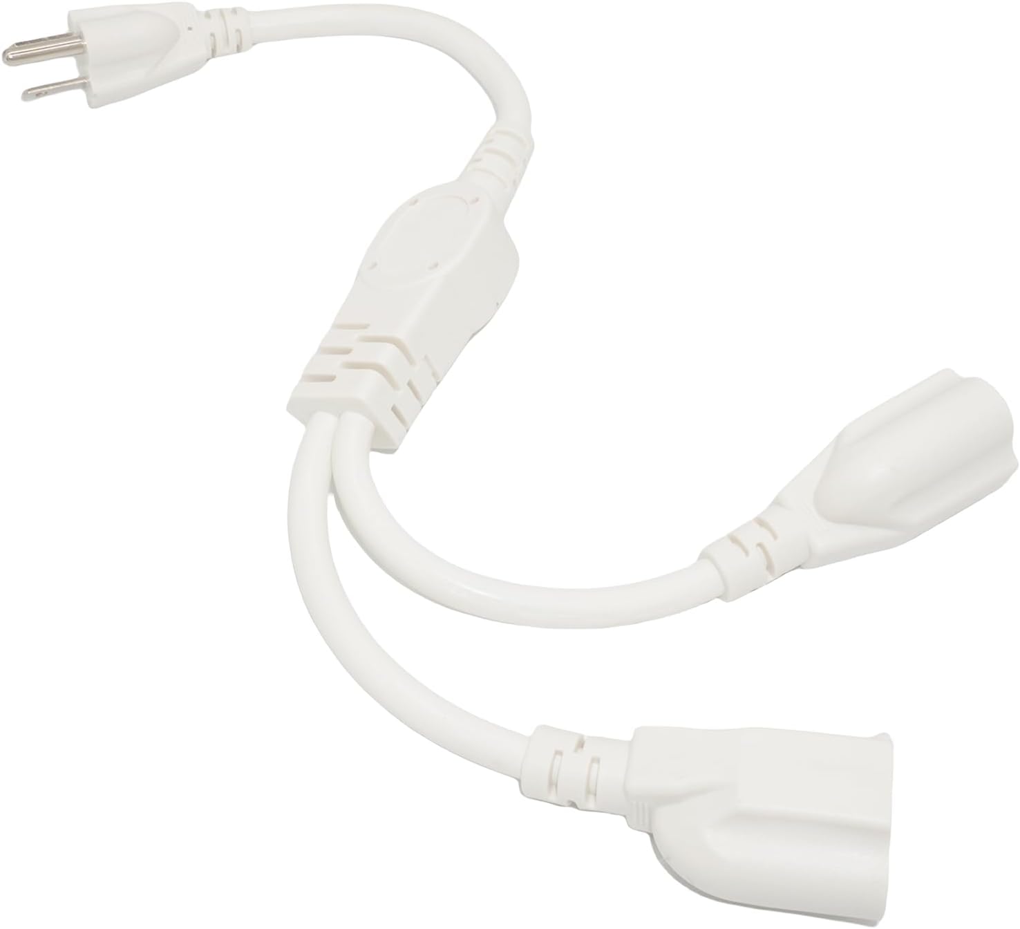 2 Way Power Splitter, 3 Prong 1 to 2 Extension Cord Splitter, 1.4' Short Extension Cord Indoor Cable Strip Outlet Saver, SJT 16AWG for Halloween Lights, Christmas Decorations, Computer, White, 1.4FT