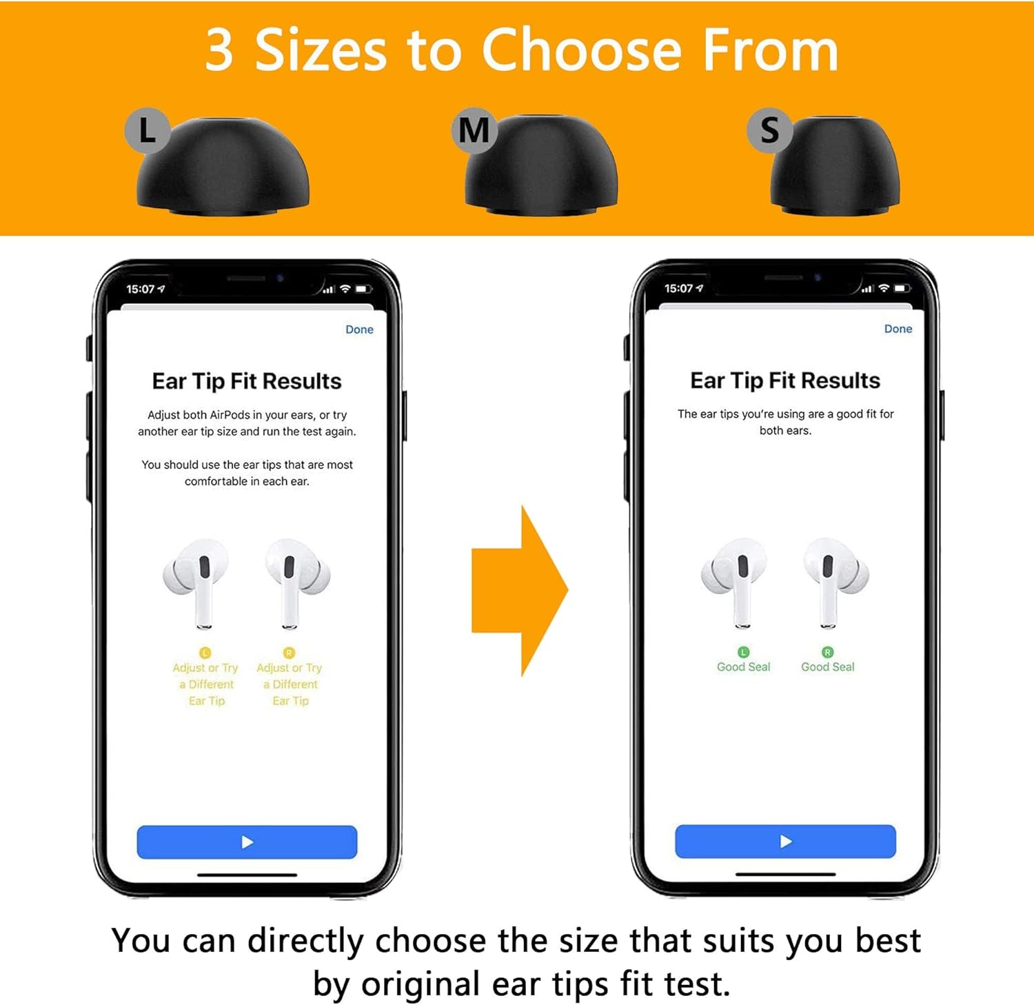 Airpod Pro Ear Tip Memory Foam & Silicone Hybrid Ear Tips, Perfect Noise Reduction, Stays in Your Ears, Ultra-Comfort, Anti-Slip Eartips, Fit in The Charging Case (Black, Assorted S/M/L)