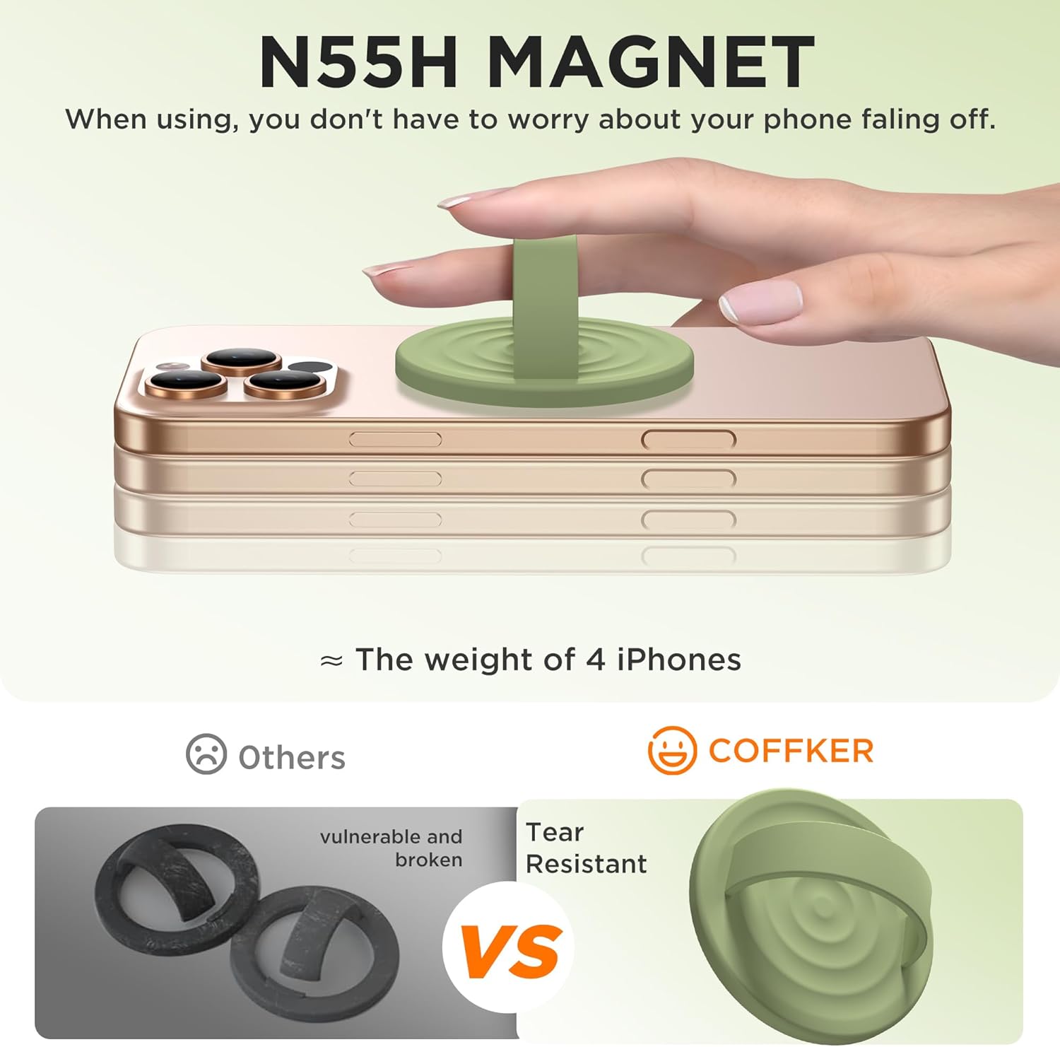 - 【Tips】This is a one-sided magnetic phone ring holder, not compatible with magnetic car mounts or wireless charging—remove before using these devices. COFFKER's 24/7 customer support, you can be sure of professional assistance whenever you need it - because we believe your experience should be as excellent as our product