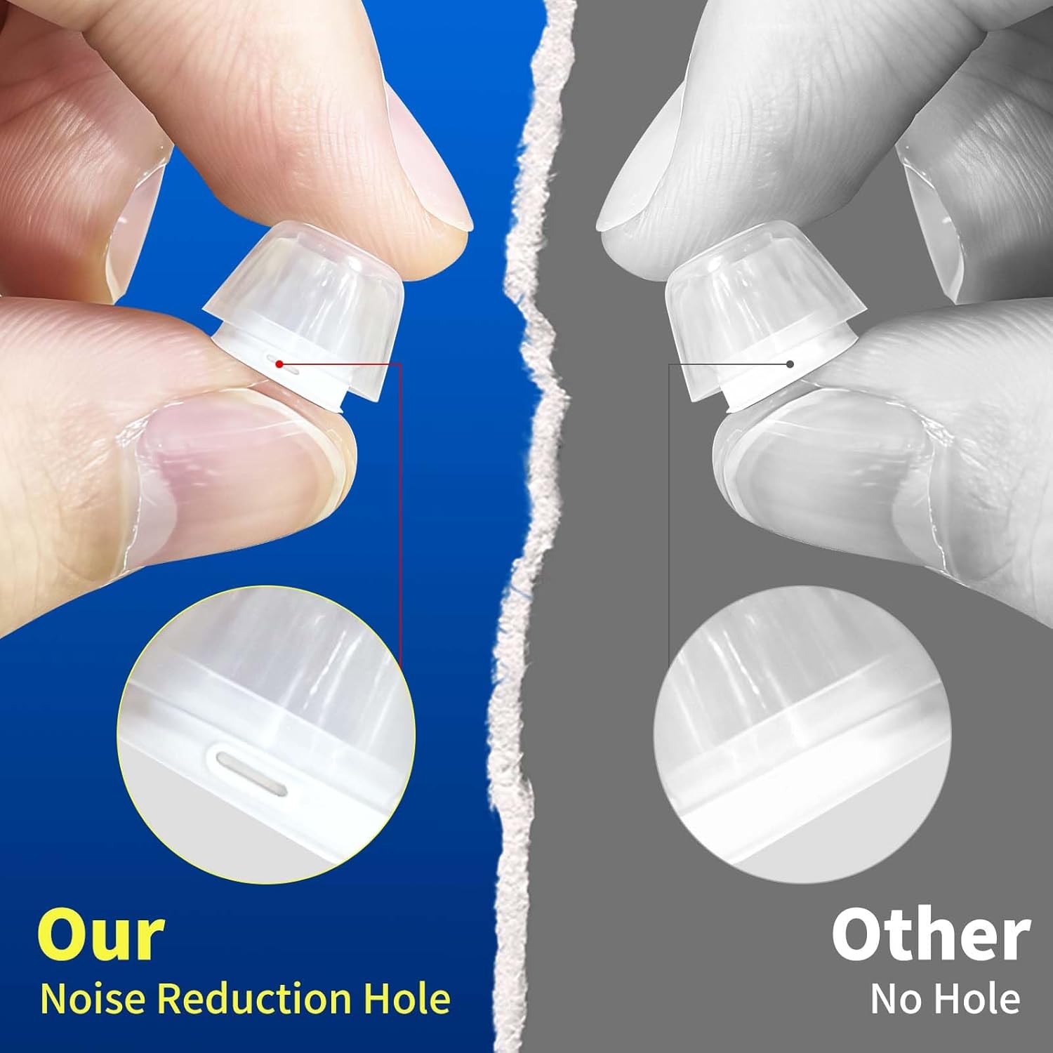 - 【Noise-Canceling】Suitable for Airpods pro replacement earbuds have two noise-canceling holes on the side, which can reduce noise and maintain the best noise-canceling effect of the original headphones