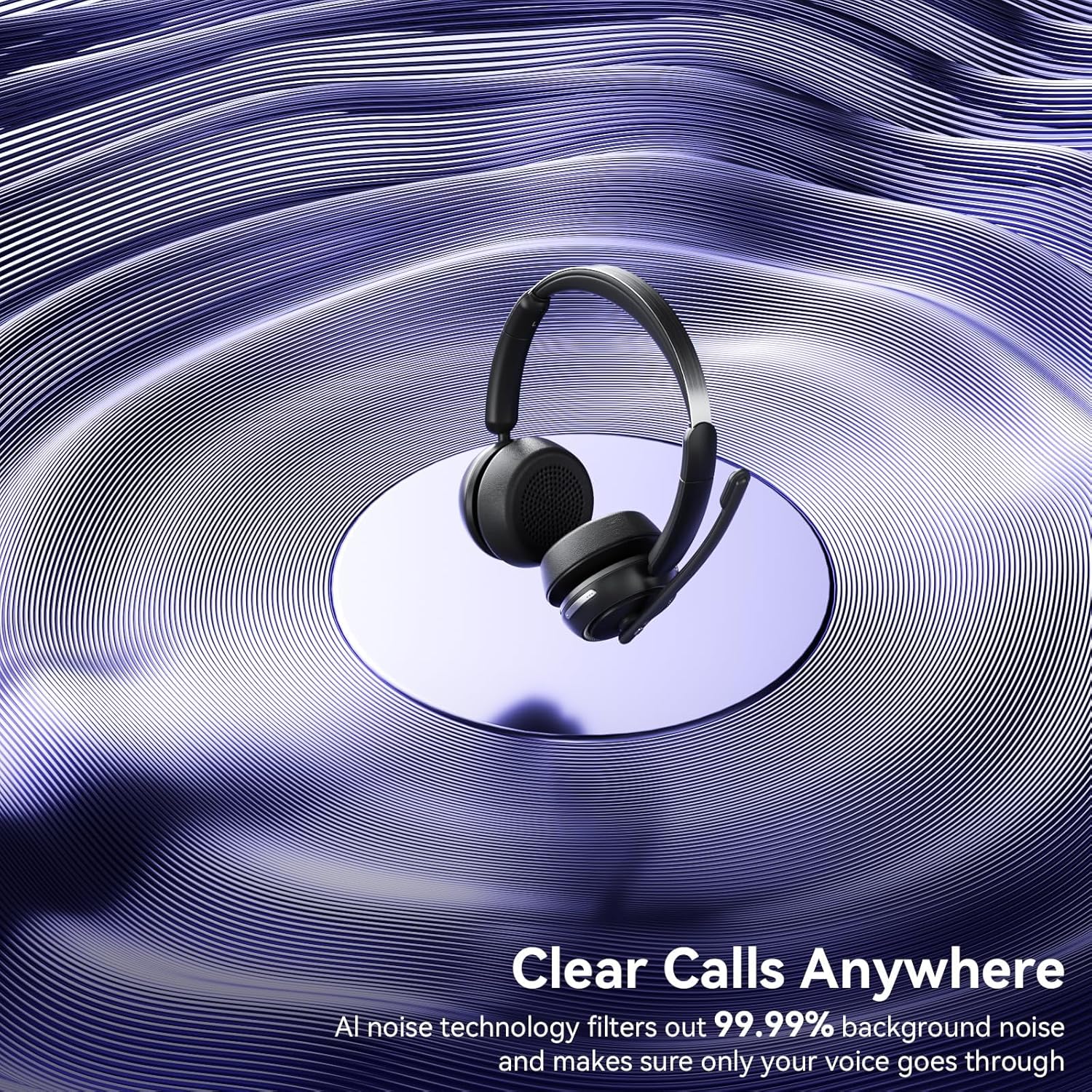 Wireless Headset with Mic for Work, Bluetooth Headset with Mic (AI Noise Canceling & Mic Mute), Wireless Headphones with USB Dongle & Charging Base for Work/Home/Call Center/PC/Computer/Zoom/Teams