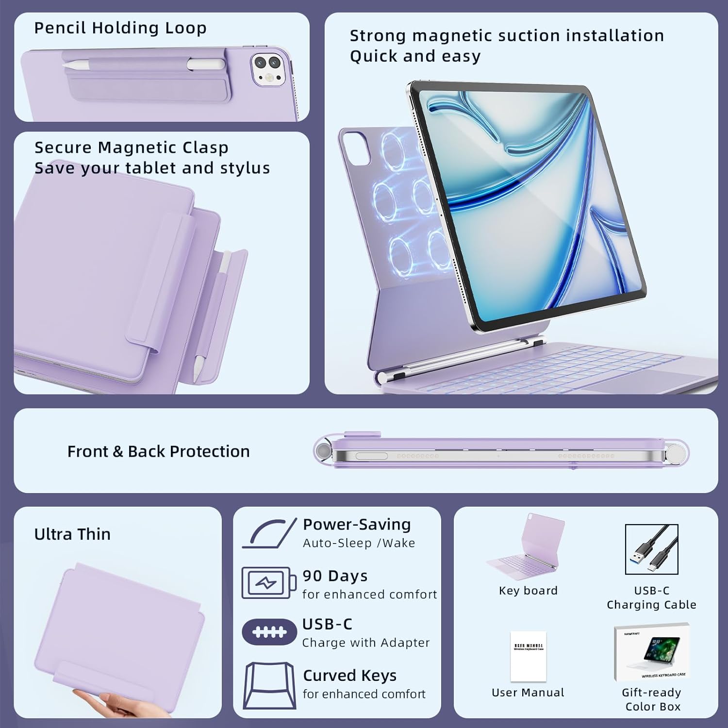 for iPad Air 13 inch Case with Keyboard (M3,2025 / M2,2024), iPad Pro 12.9 (6th/5th/4th/3rd Gen) Magic Keyboard, Springy Backlit Keys, Stain-Resistant Surface, Multi-Touch Trackpad, Purple