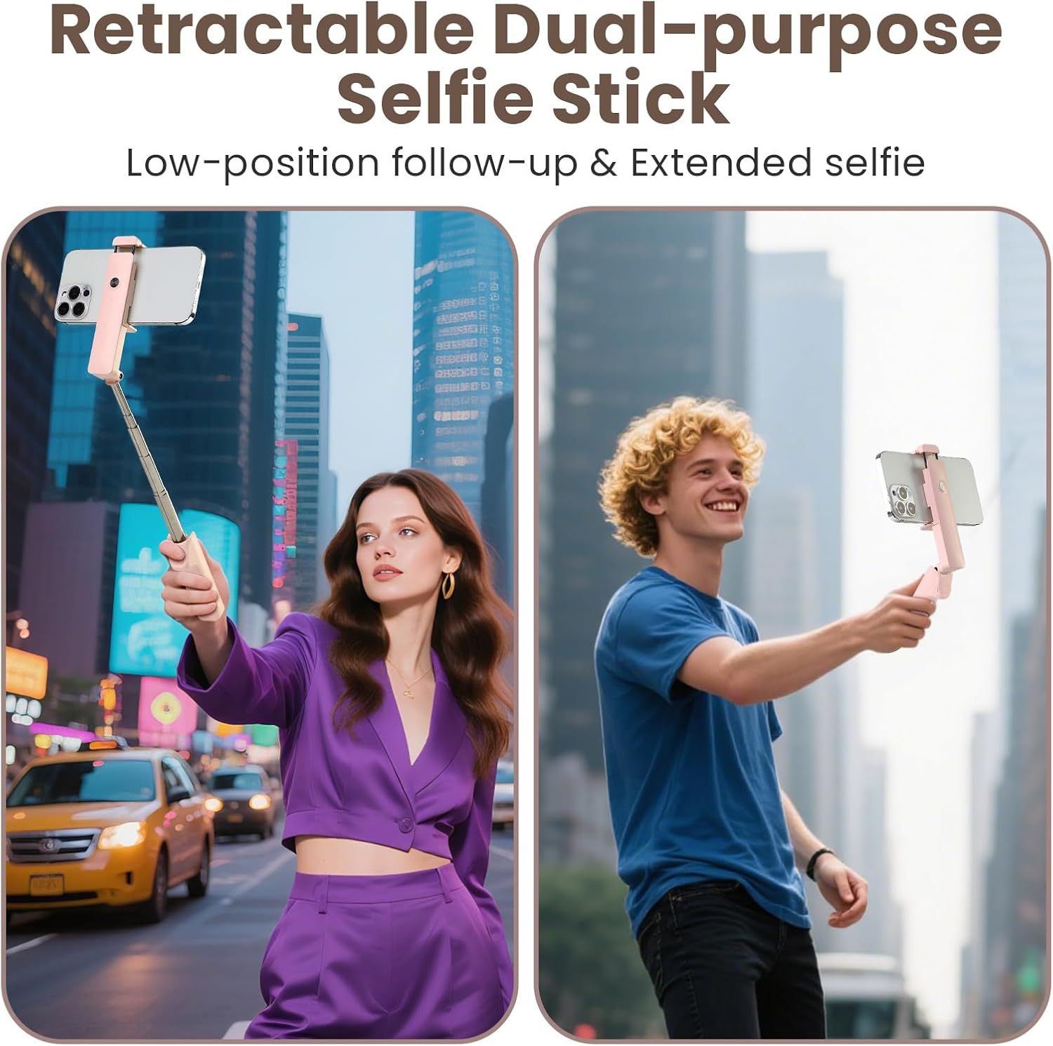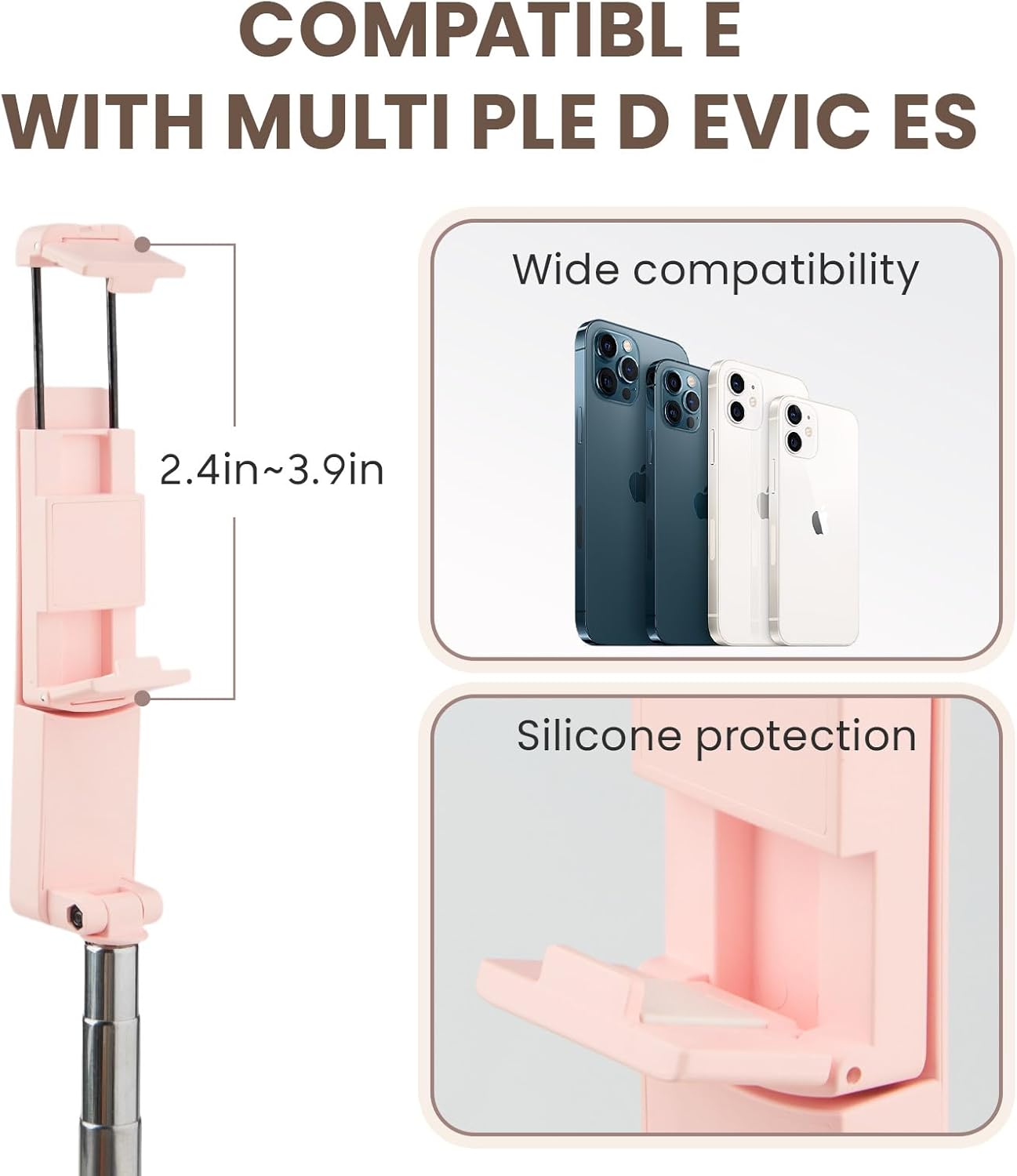 - 【All-in-One Selfie Stick】This selfie stick works with smartphones between 4 and 7 inches, Compatible with iPhone 16 Pro Max/16 Plus/16 Pro/16/iPhone 15 Pro Max/15 Plus/15 Pro/15/iPhone 14 Pro Max/ 14 Pro/ 14/iPhone 13 Pro Max/ 13 Pro/ 13/ iPhone SE/ iPhone 12/ 12 pro/ 12 pro max/ 12 mini/ 11/ 11 Pro Max/ 11 pro/ X/ XS max/ XR/10, iPhone 8 plus/ iPhone 8/ 7/ 7 plus/6S / 6/Samsung Galaxy S24/ S23/Z Flip/ NOTE Series/ Google Pixel Series/ OnePlus 12 / Nord / Moto G Power / Stylus/LG / Sony and more,The adjustable pull clip ranges from 2.4 to 3.9 inches, allows you to rotate the phone horizontally and vertically