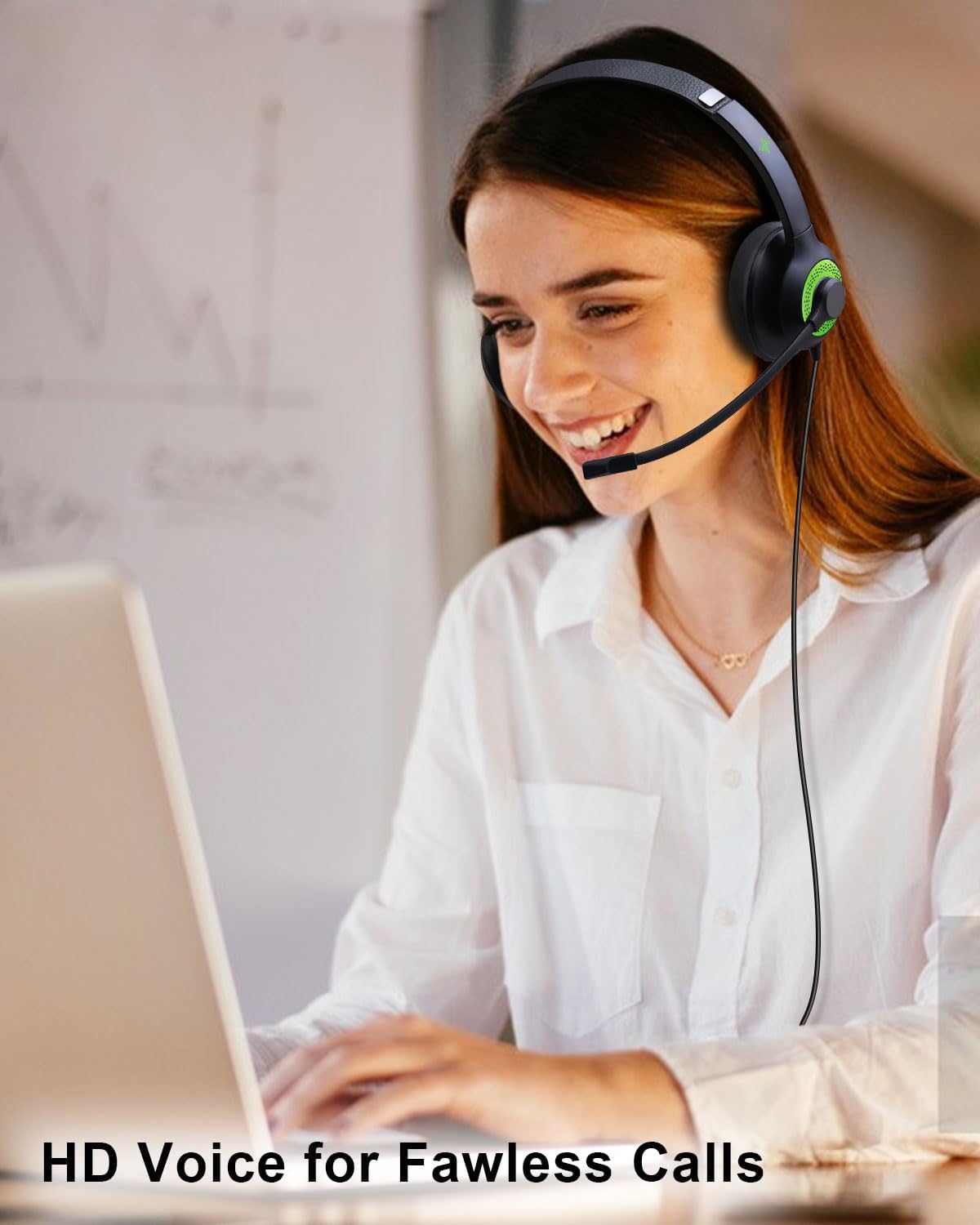 USB Headset with Mic for PC, On-Ear Computer Laptop Headphones with Noise Cancelling Microphone in-line Control for Home Office Online Class (USB+3.5mm, Green)