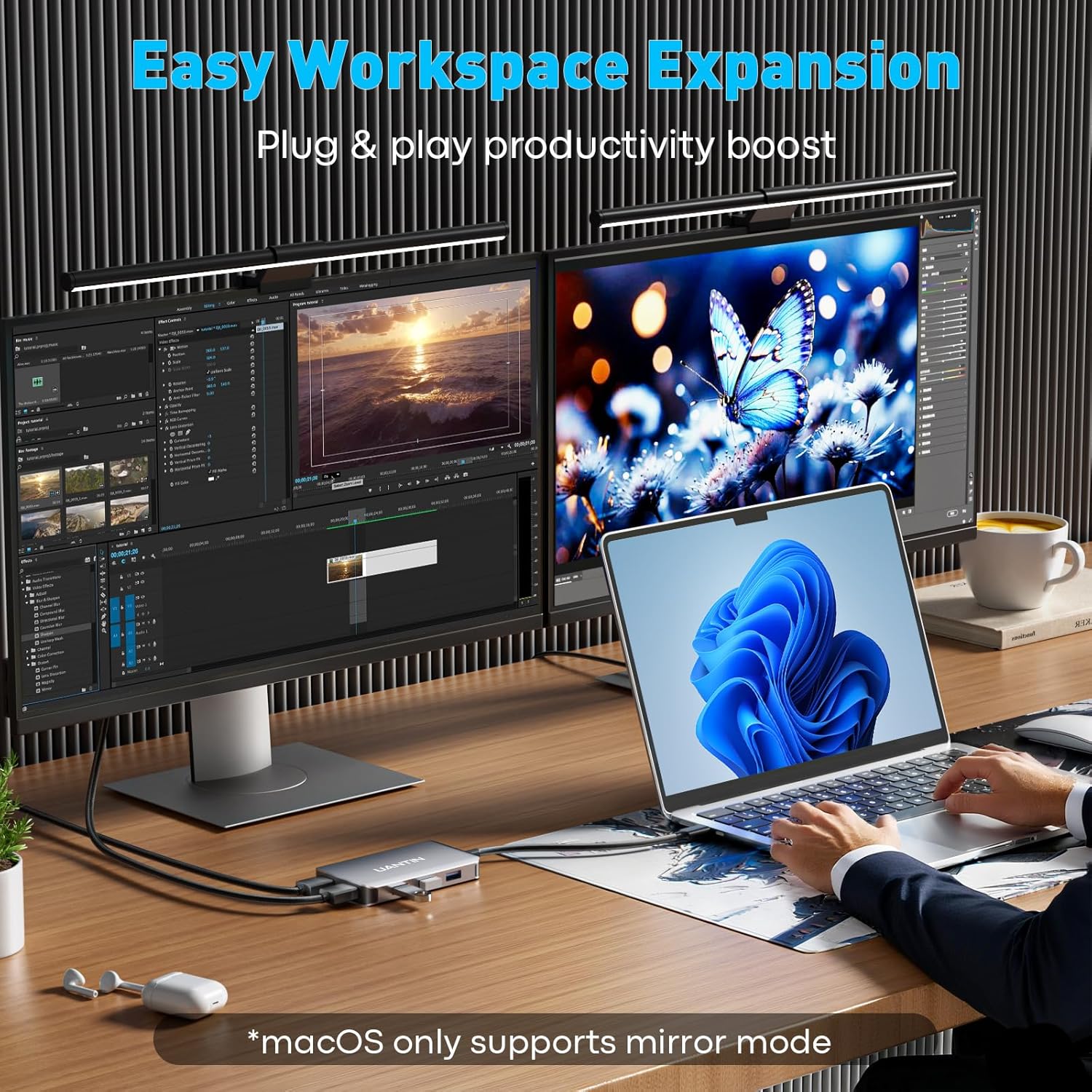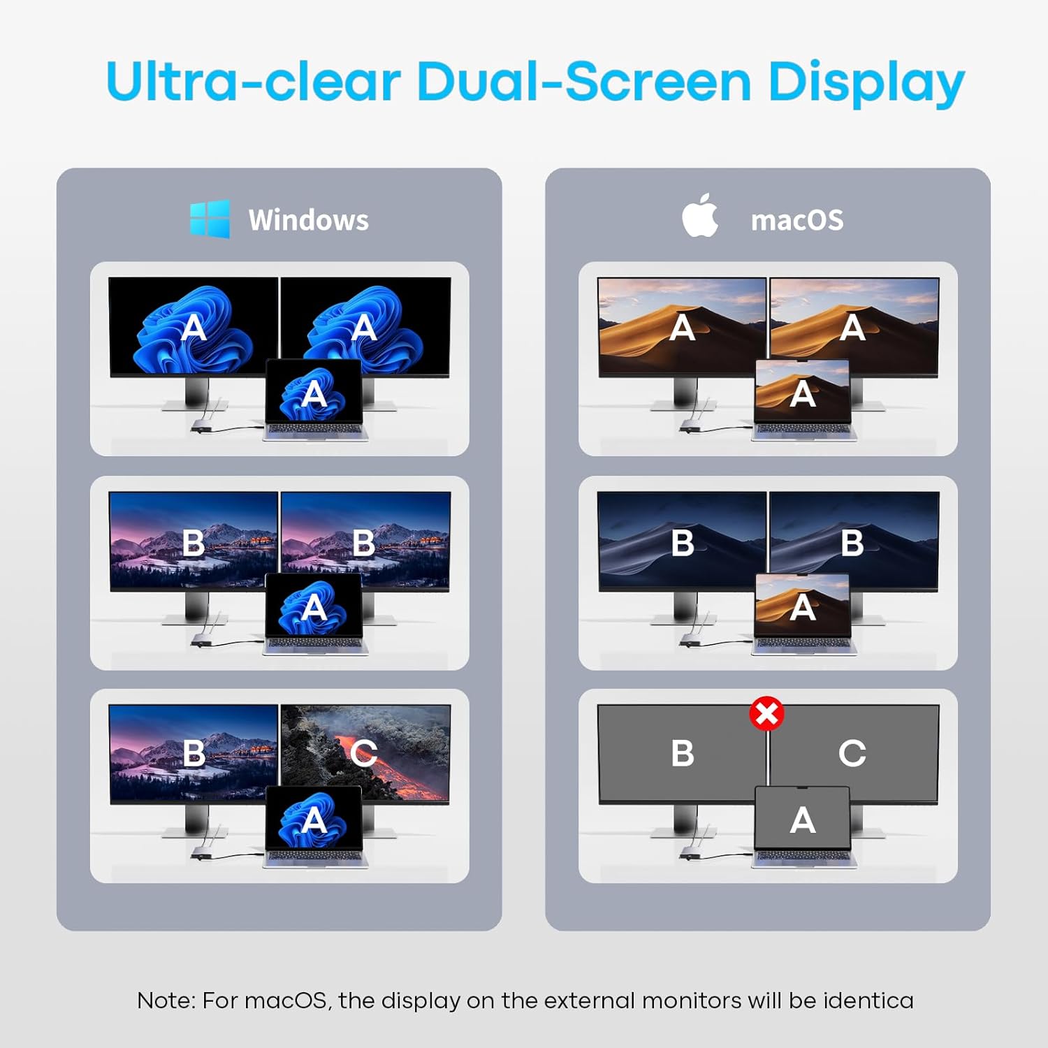 - 🚀【Simple, Portable & Widely Compatible】 Plug and play without driver, aluminum alloy body design, heat dissipation is efficient and wear-resistant; compatible with Windows/macOS/ChrimeOS system, suitable for Dell, HP, Lenovo, Surface, MacBook and other mainstream brands of laptops. Note: Dual-video expansion is only available for Windows, macOS only supports mirror mode.